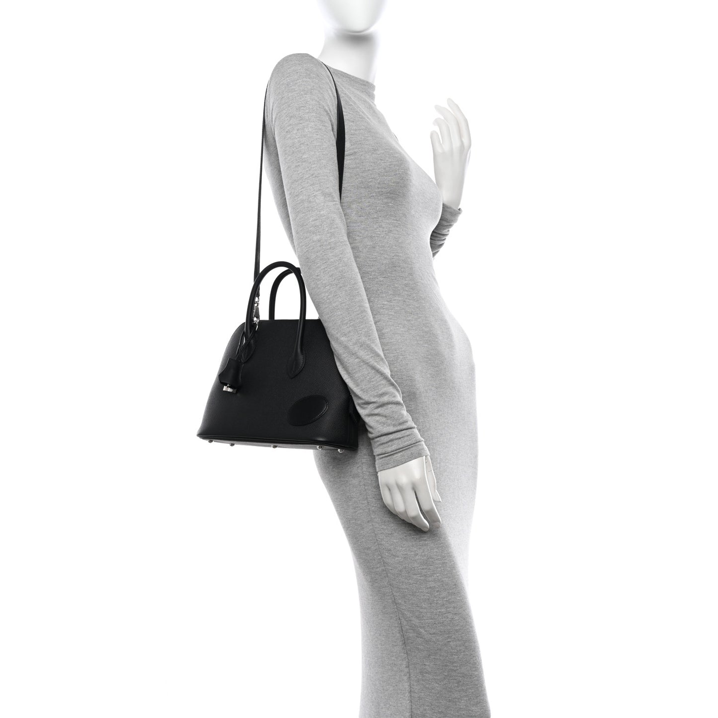 This is an authentic HERMES Epsom Swift Vache Hunter En Desordre 1923 Bolide 25 in Black. This stylish tote is crafted of Epsom calfskin leather in black. This mini handbag features rolled leather top handles, an optional leather shoulder strap, and silver palladium plated hardware. The top zipper opens to a matching leather interior with two patch pockets.Follow this item for alerts. Hermes is a registered trademark of Hermes. FASHIONPHILE is not affiliated with Hermes.