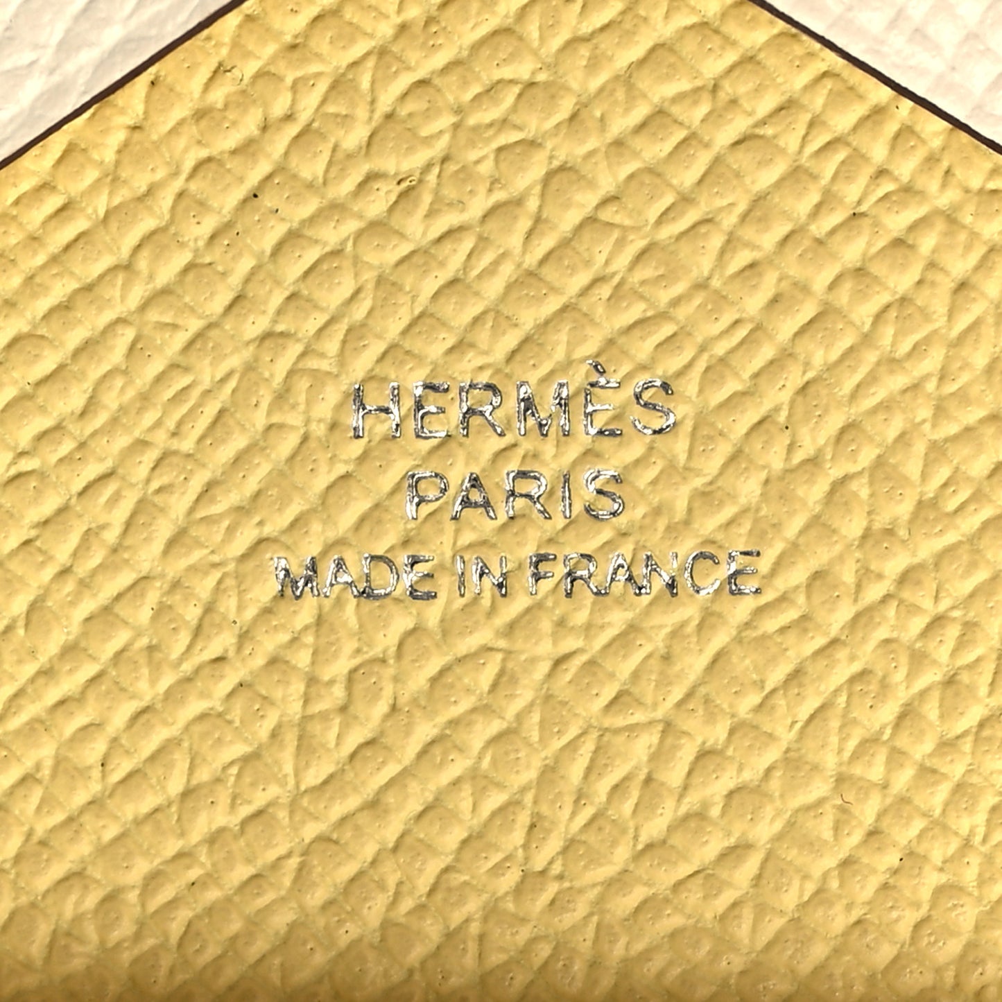 Hermes/ Accessories/ Wallets /Hermes Epsom Verso Calvi Duo Card Case Nata Jaune Poussin