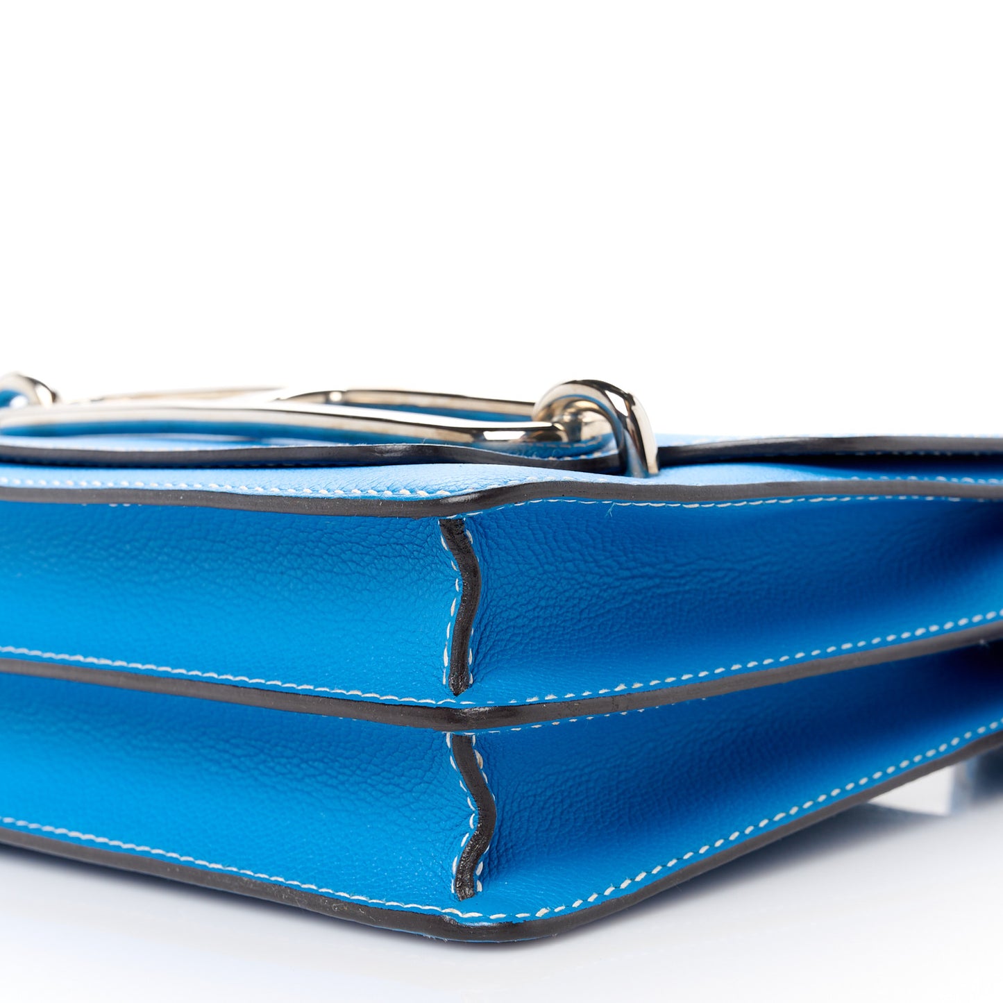 This is an authentic HERMES Evercolor Sac Roulis 23 in Bleu Hydra. This stunning shoulder bag is beautifully crafted of classic evercolor calfskin leather in bright blue. The bag features a leather strap and silver plated hardware. The top flap opens to a partitioned leather interior with pockets.Follow this item for alerts. Hermes is a registered trademark of Hermes. FASHIONPHILE is not affiliated with Hermes.