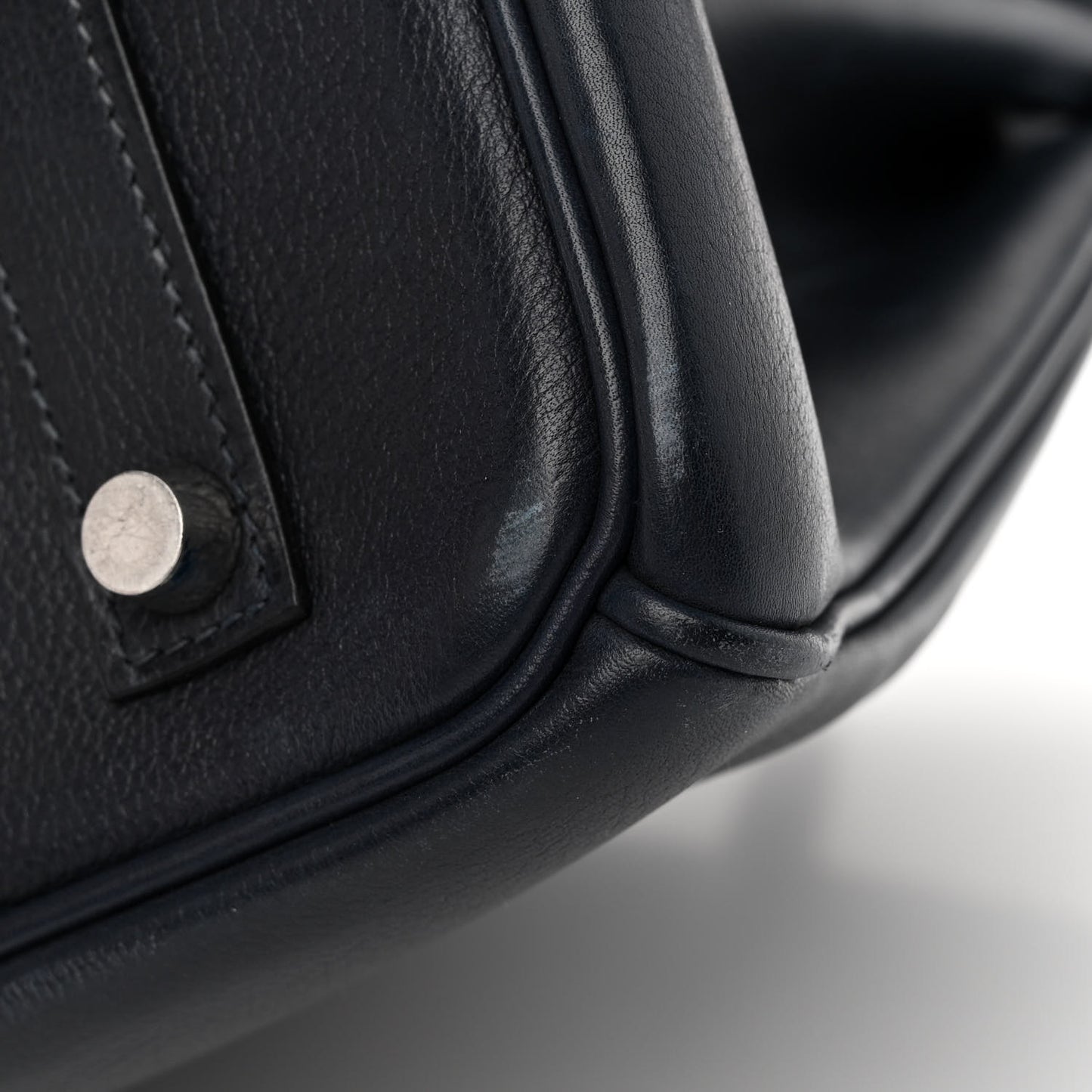 This is an authentic HERMES Evergrain Birkin 35 in Bleu Indigo. This stylish tote is beautifully crafted of evergrain calfskin leather in navy blue. The bag features rolled leather top handles, a front flap, and strap closure with palladium hardware including strap links and a front turn lock. This opens the top flap to a matching chevre goatskin leather interior with zipper and patch pockets.Follow this item for alerts. Hermes is a registered trademark of Hermes. FASHIONPHILE is not affiliated with Hermes.