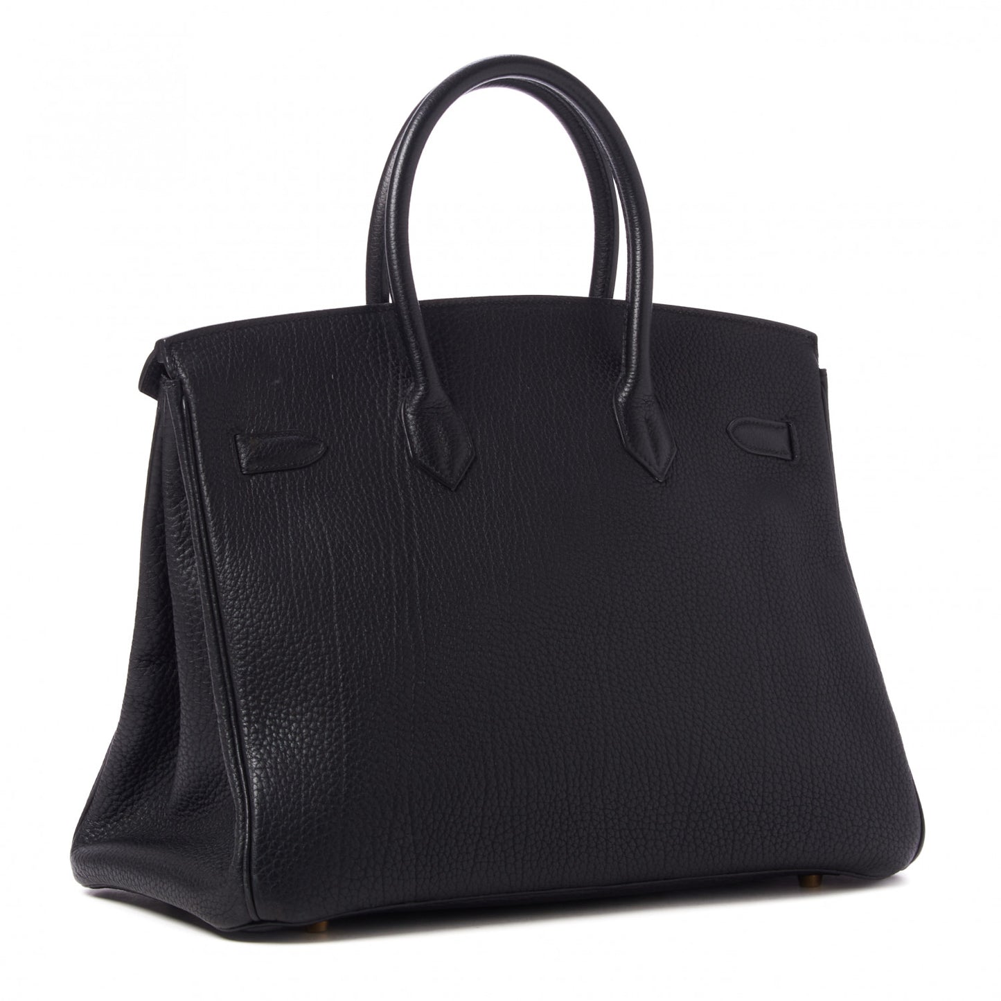 This is an authentic HERMES Fjord Birkin 35 in Black. This stunning handbag is crafted of grained leather in black. The bag features thin but sturdy rolled leather top handles, a crossover flap with a strap closure, clasps with a gold plated turn-lock, and a hanging clochette with keys. The bag opens to a spacious matching leather interior with a zipper and patch pocket.Follow this item for alerts. Hermes is a registered trademark of Hermes. FASHIONPHILE is not affiliated with Hermes.