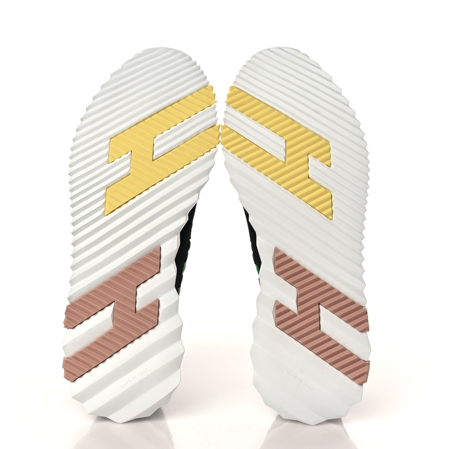 This is an authentic HERMES Flex Maille Womens Bolduc Sneakers size 39 in Multicolor and Black. These stylish sneakers are crafted of multicolor knit print in black, light pink, green, and yellow, with a thick white rubber sole.