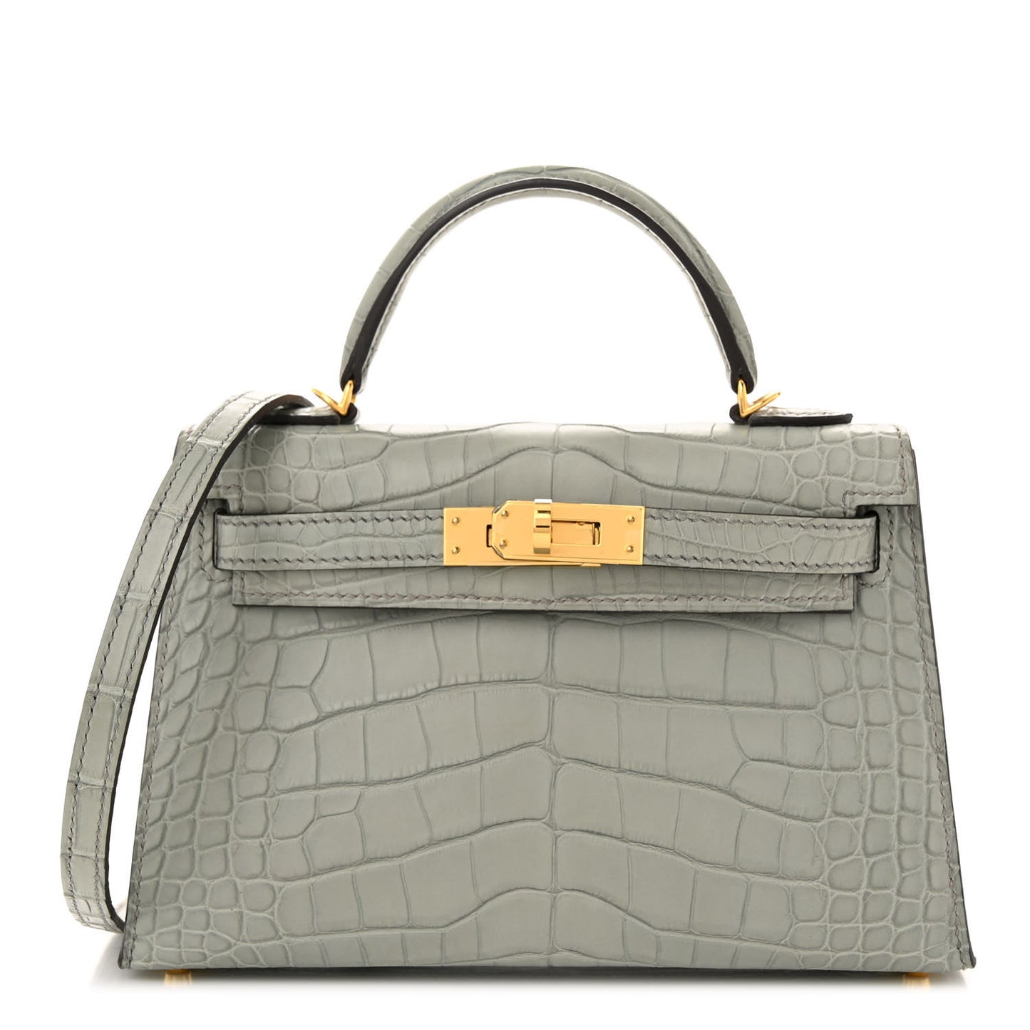 Matte Alligator Mini Kelly Sellier 20 Gris Ciment
