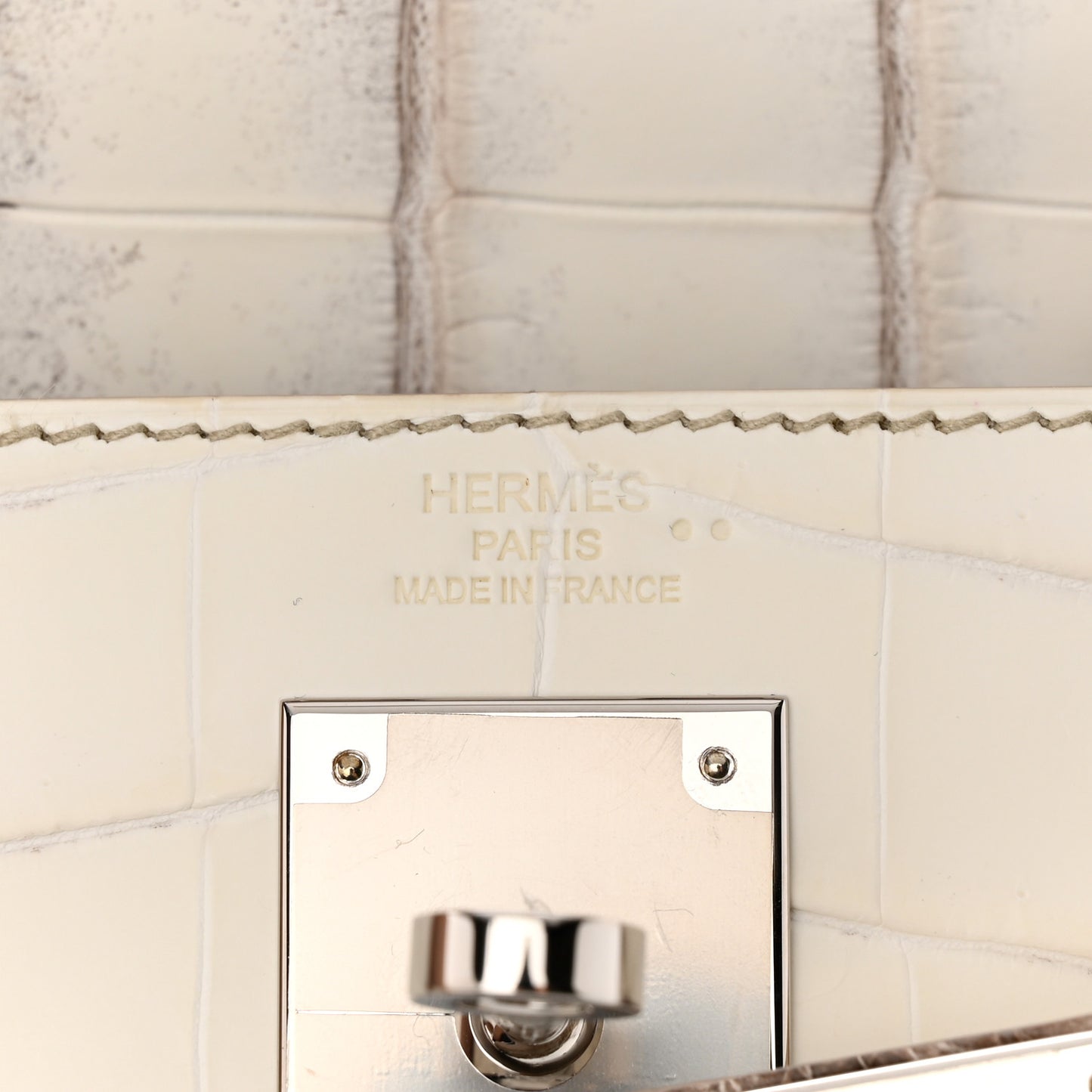 Hermes/ Bags/ Shoulder Bags /Hermes Matte Niloticus Crocodile Himalaya Kelly Retourne 28 White