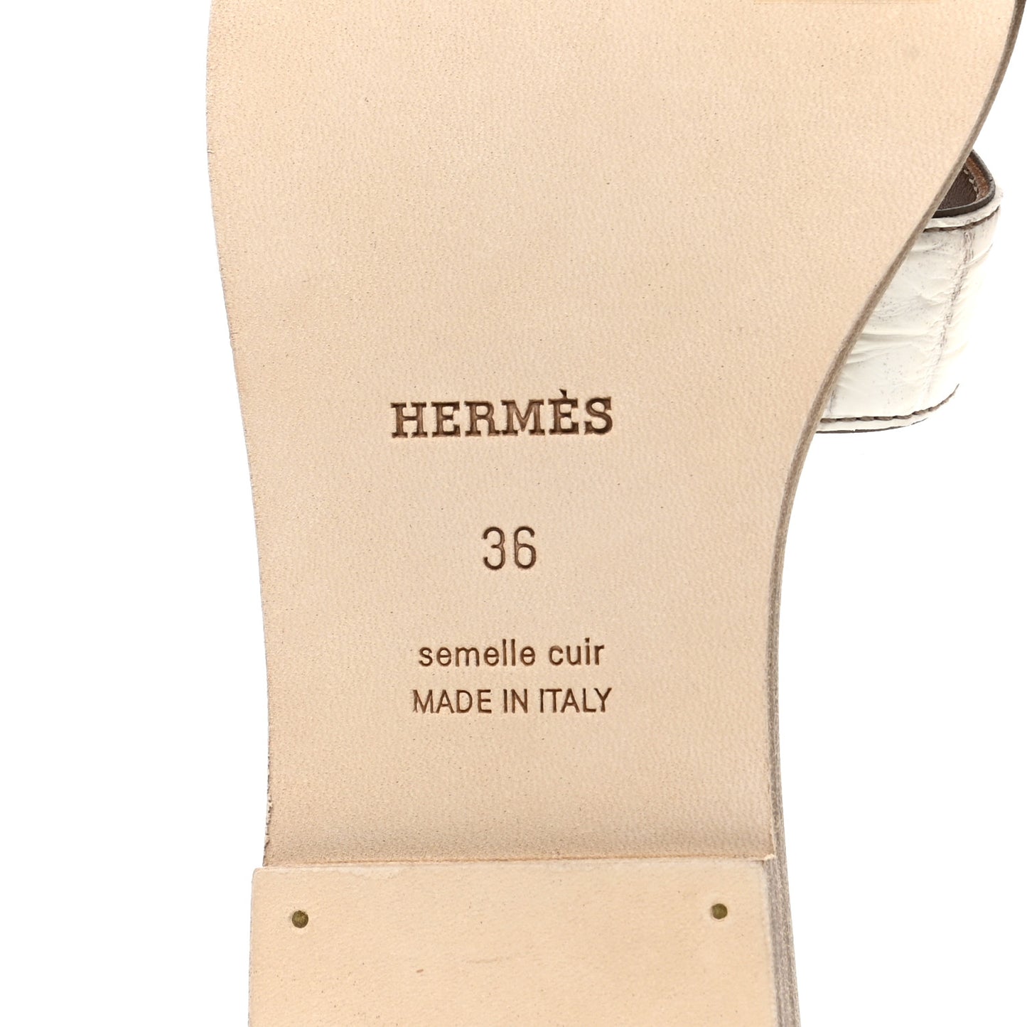 Hermes/ Accessories/ Shoes /Hermes Matte Niloticus Crocodile Himalaya Oran Sandals 36 Blanc