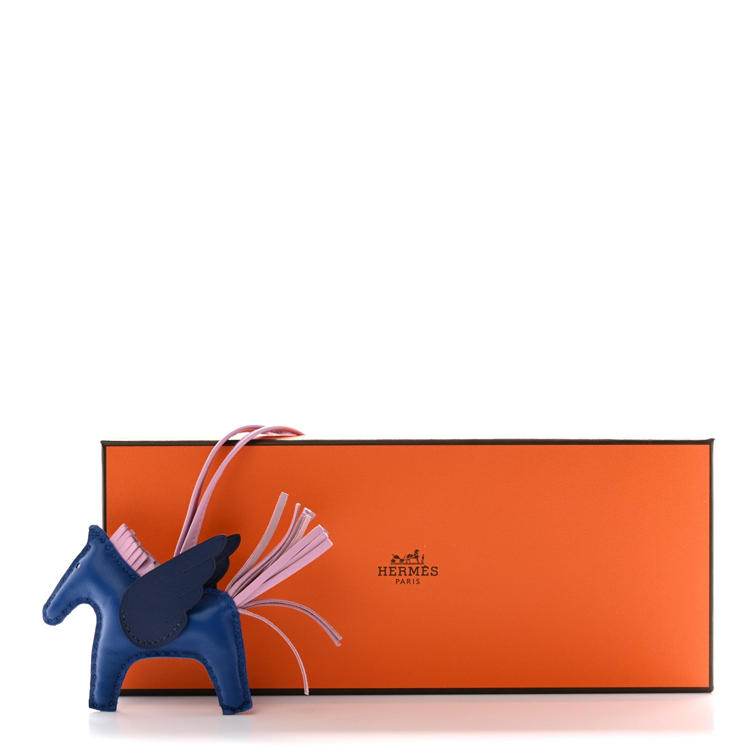 Hermes/ Accessories/ Bag Charms /Hermes Milo Lambskin Grigri Rodeo Pegase Horse Bag Charm PM Bleu France Mauve Sylvestre Bleu Saphir