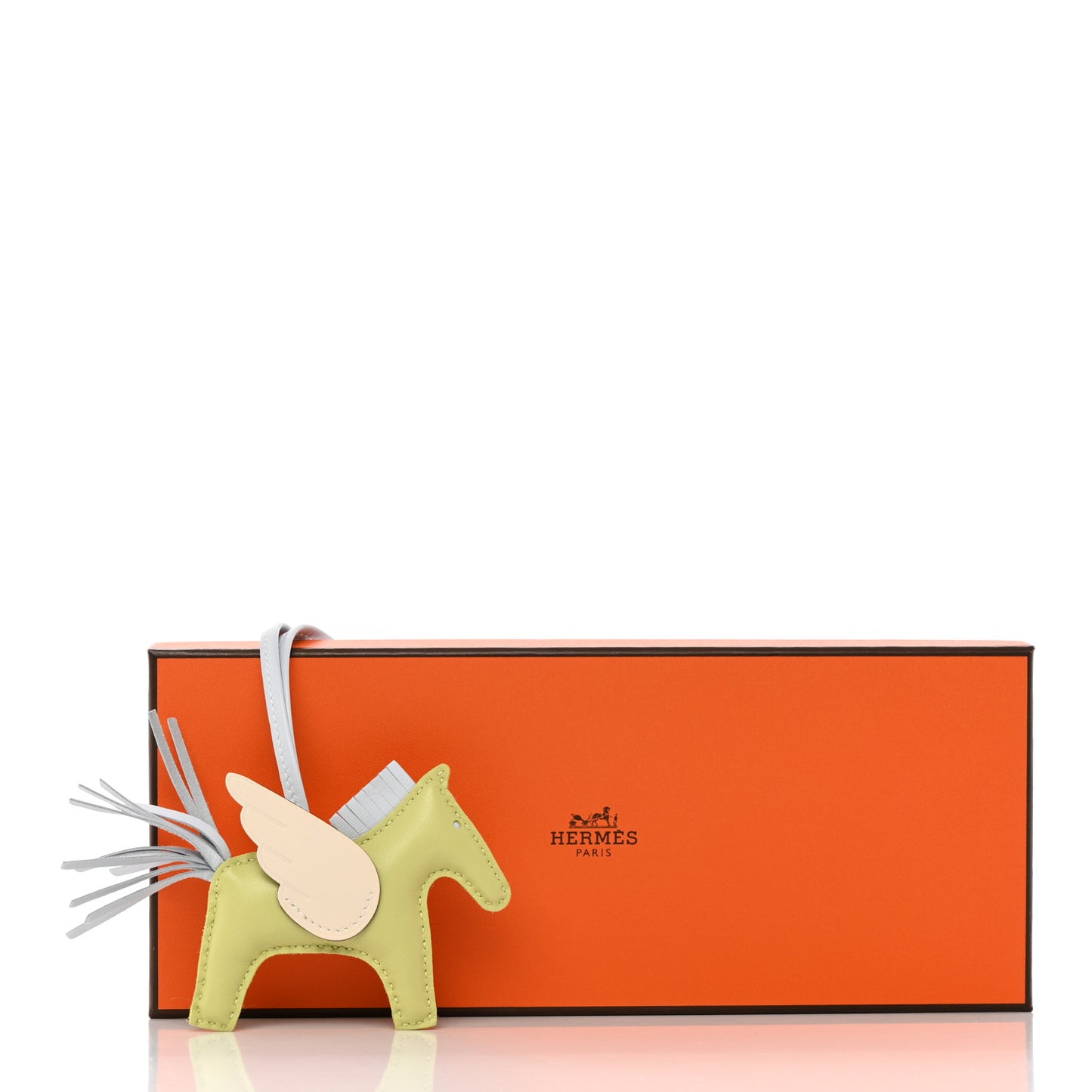 Hermes/ Accessories/ Bag Charms /Hermes Milo Lambskin Grigri Rodeo Pegase Horse Bag Charm PM Jaune Bourgeon Bleu Brume Nata