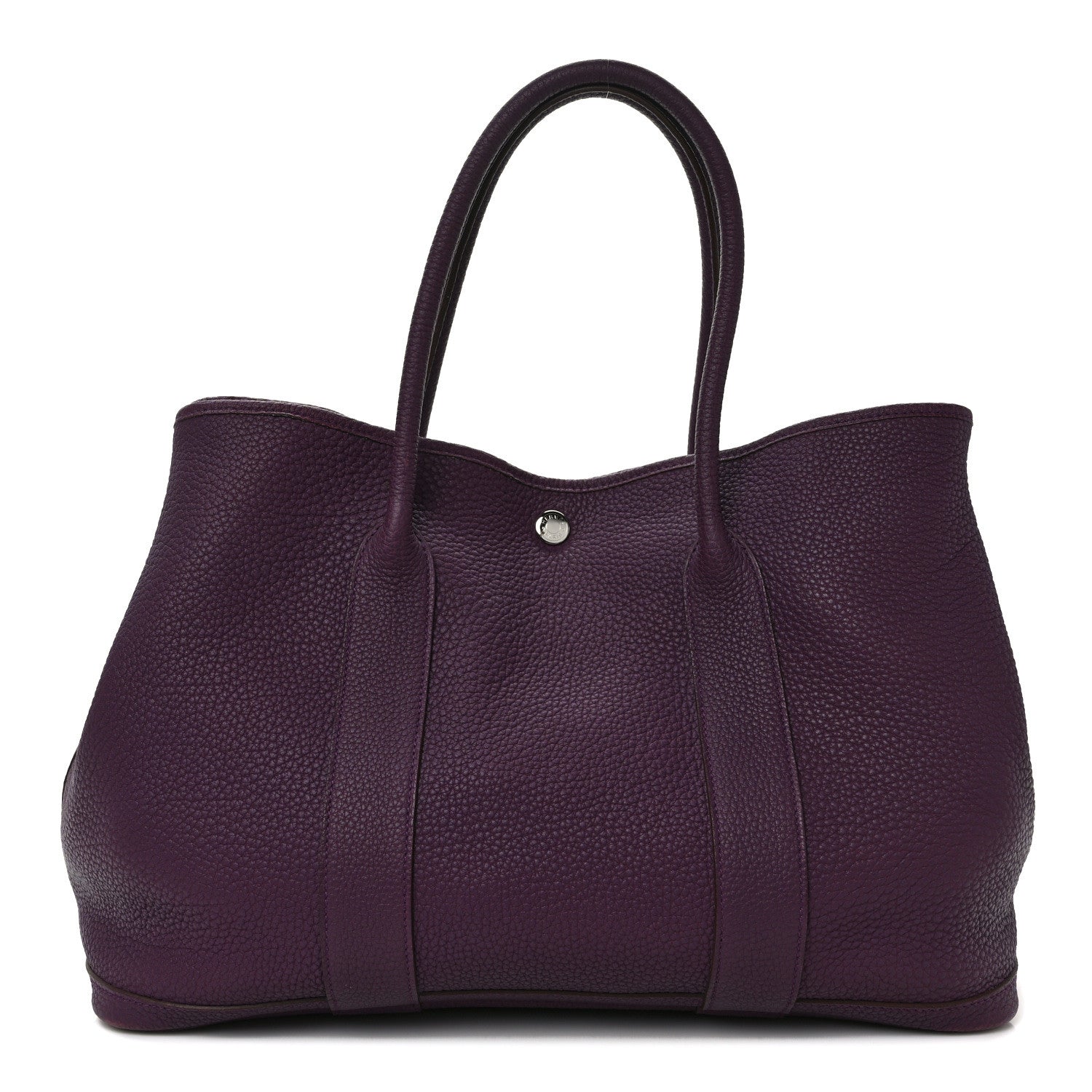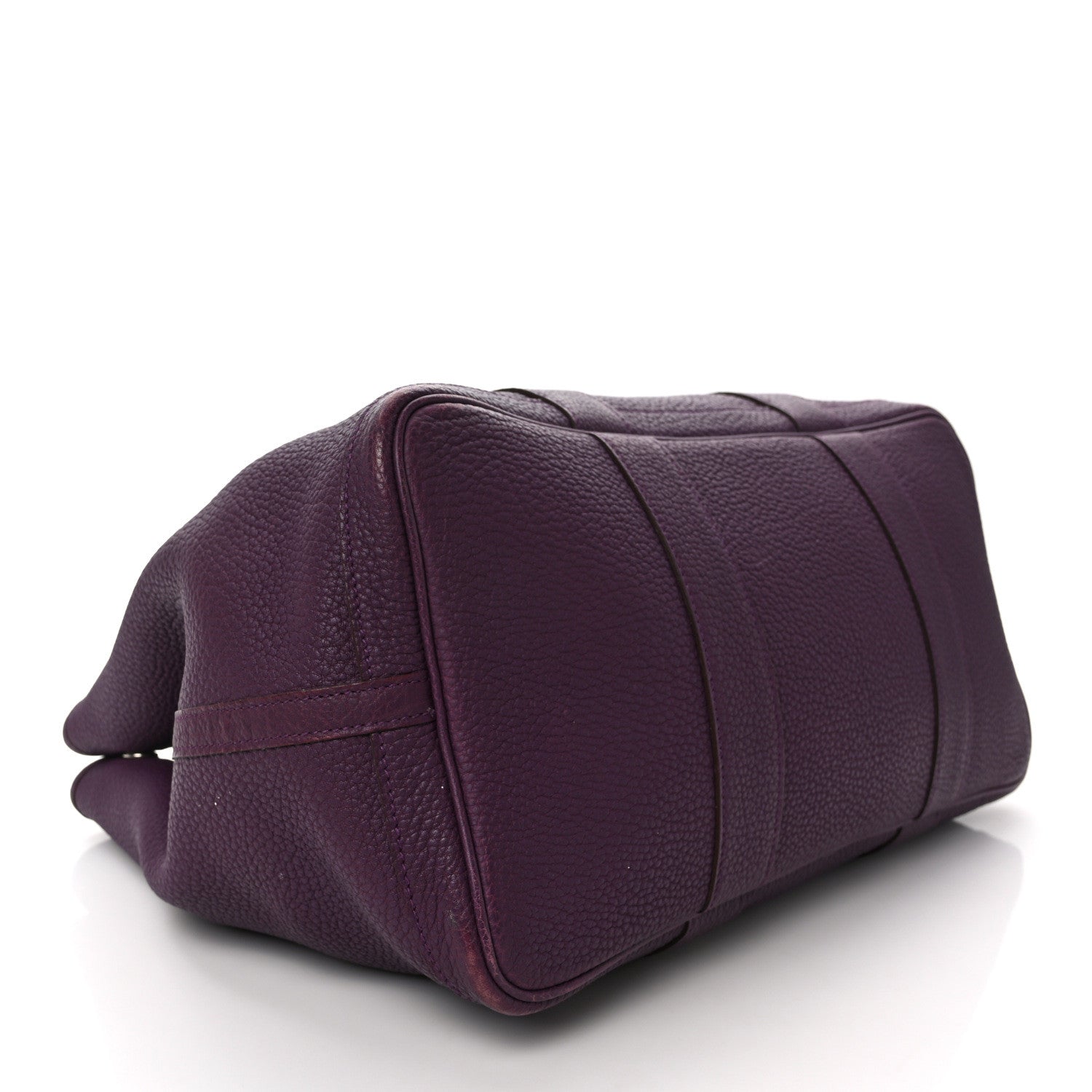 This is an authentic HERMES Negonda Garden Party 30 TPM in Cassis. This sophisticated tote is crafted of grained calfskin leather in dark purple. It features rolled top handles, expandable sides, and silver hardware. The top is open to a herringbone fabric interior with a zip pocket.Follow this item for alerts. Hermes is a registered trademark of Hermes. FASHIONPHILE is not affiliated with Hermes.