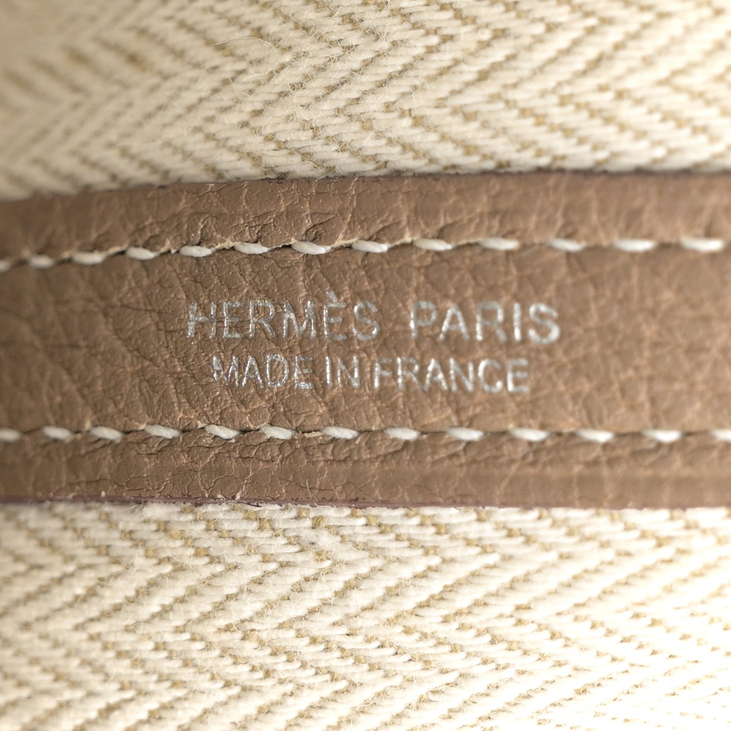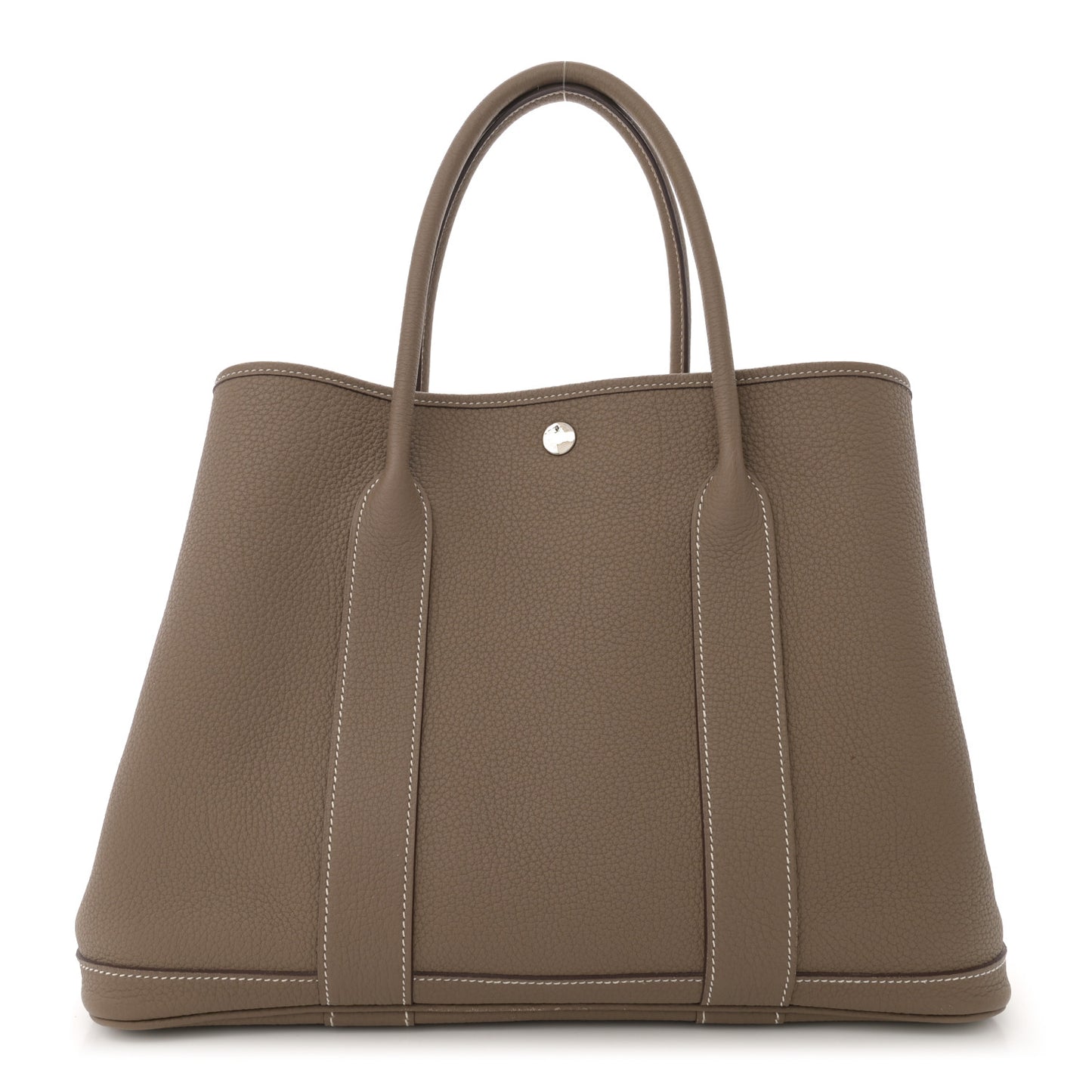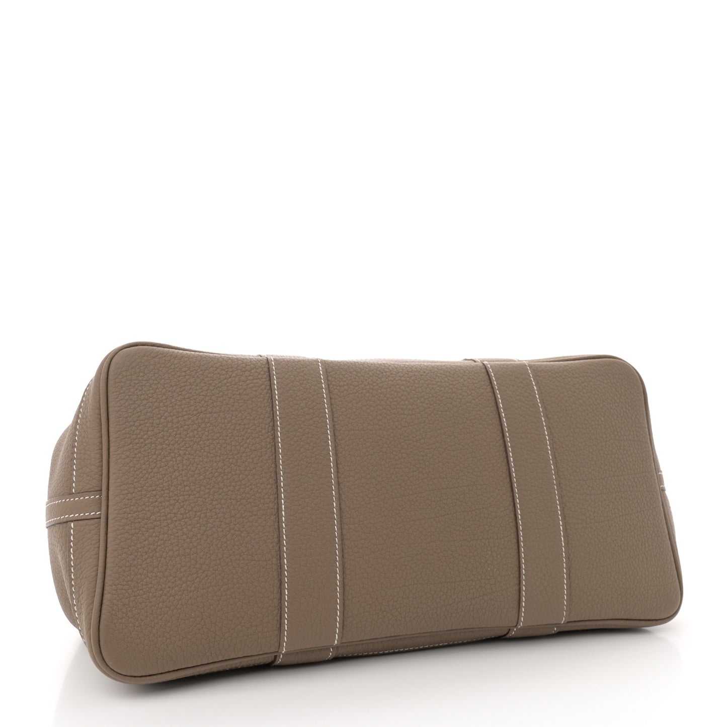 This is an authentic HERMES Negonda Garden Party 36 MM in Etoupe. This sophisticated tote is finely crafted of grained taupe leather with contrast stitching in white. The bag features expandable sides with a snap, facing trim that transitions into rolled leather top handles and a top snap in palladium silver that opens to a spacious ivory fabric interior with a zipper pocket.Follow this item for alerts. Hermes is a registered trademark of Hermes. FASHIONPHILE is not affiliated with Hermes.