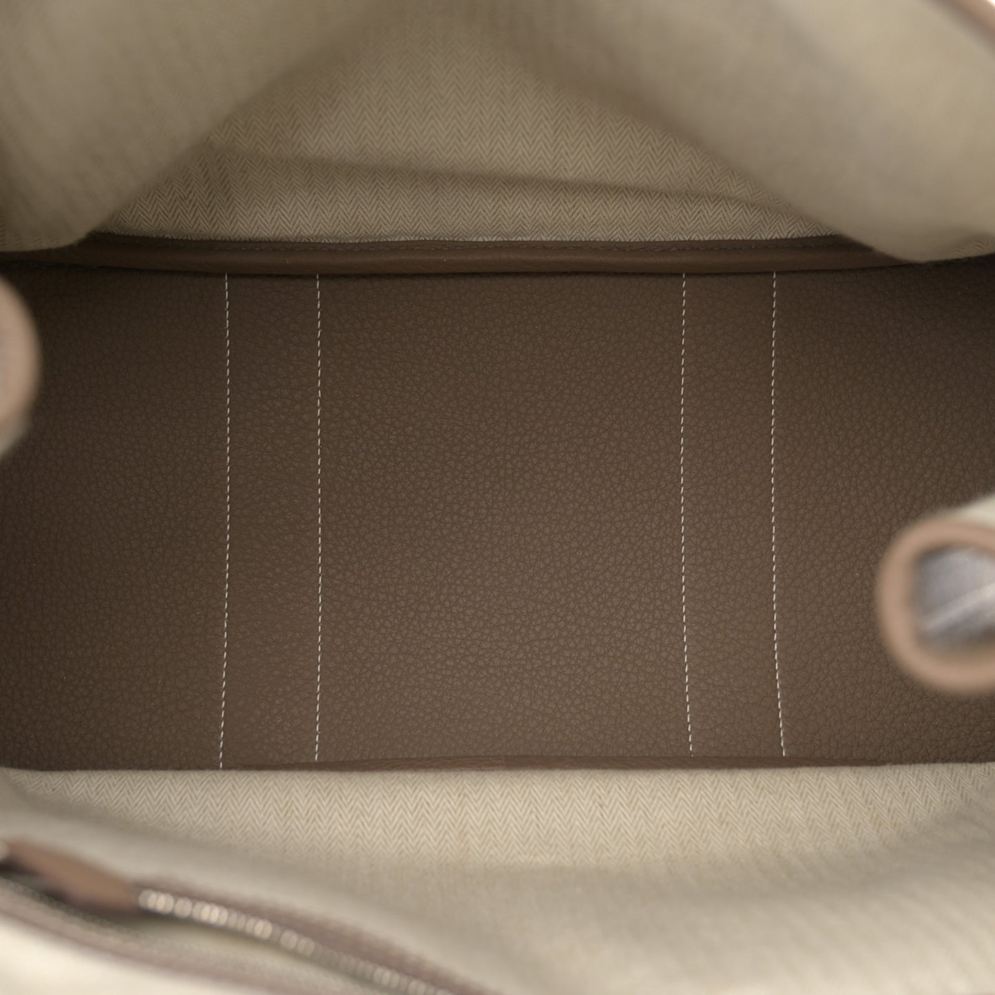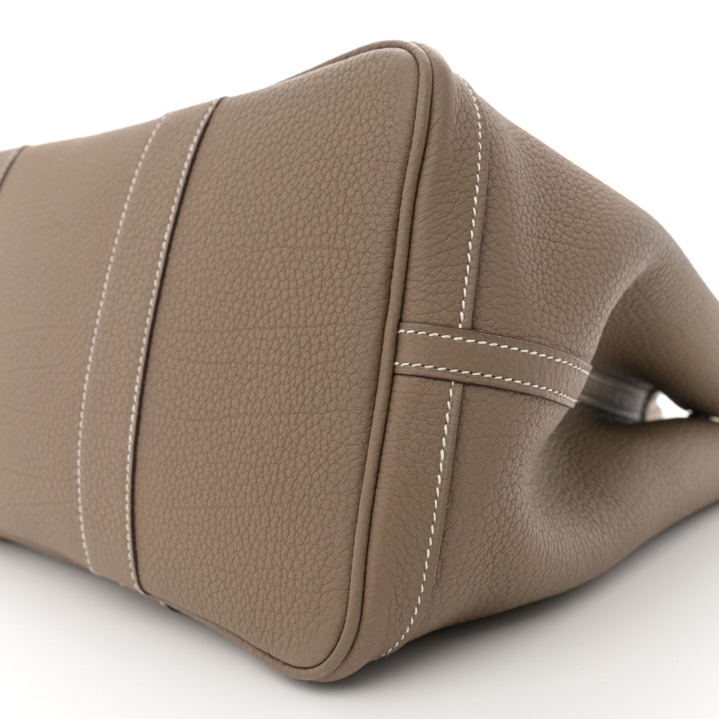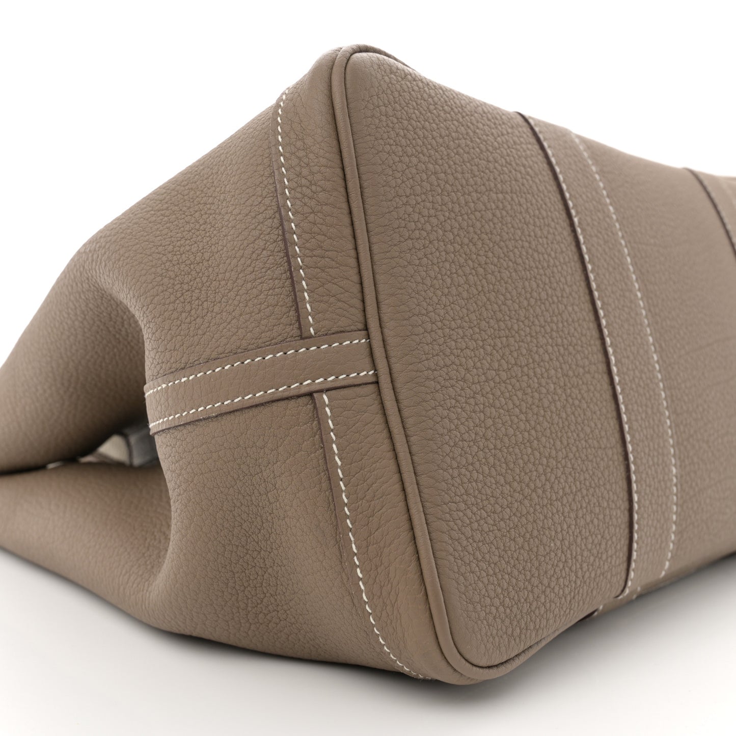 This is an authentic HERMES Negonda Garden Party 36 MM in Etoupe. This sophisticated tote is finely crafted of grained taupe leather with contrast stitching in white. The bag features expandable sides with a snap, facing trim that transitions into rolled leather top handles and a top snap in palladium silver that opens to a spacious ivory fabric interior with a zipper pocket.Follow this item for alerts. Hermes is a registered trademark of Hermes. FASHIONPHILE is not affiliated with Hermes.
