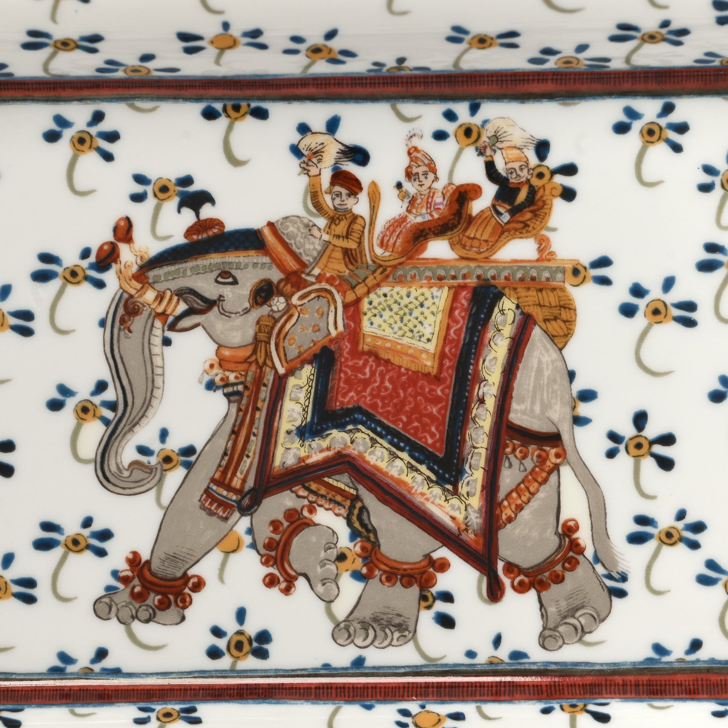 This is an authentic HERMES Porcelain Beloved India Change Tray in White, Multicolor. This classic tray is a work of magnificent artistry by Hermes in multicolor porcelain. The tray features a Indian elephant motif with a gold rim.Follow this item for alerts. Hermes is a registered trademark of Hermes. FASHIONPHILE is not affiliated with Hermes.
