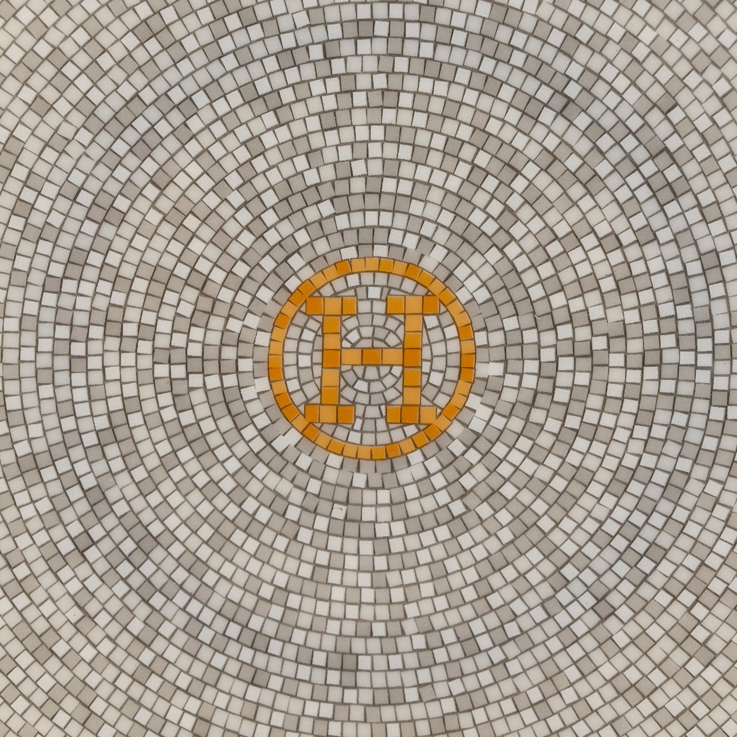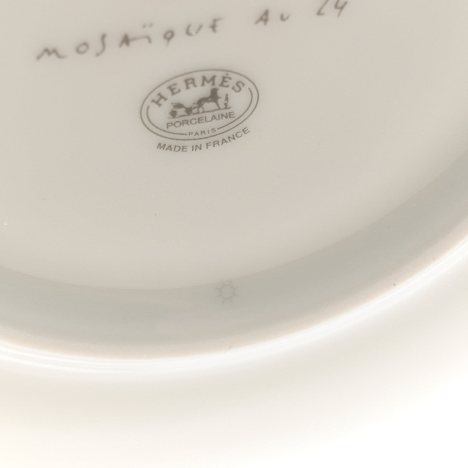This is an authentic HERMES Porcelain Mosaique Au 24 Bread And Butter Plate Set of 2 in Gold. These classic plates are a work of magnificent artistry by Hermes in grey and antique white porcelain. The plates feature a bold classical mosaic design with a central Hermes logo.Follow this item for alerts. Hermes is a registered trademark of Hermes. FASHIONPHILE is not affiliated with Hermes.