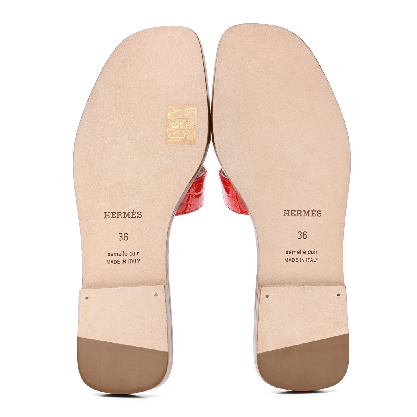 Hermes/ Accessories/ Shoes /Hermes Shiny Alligator Oran Sandals 36 Orange Poppy