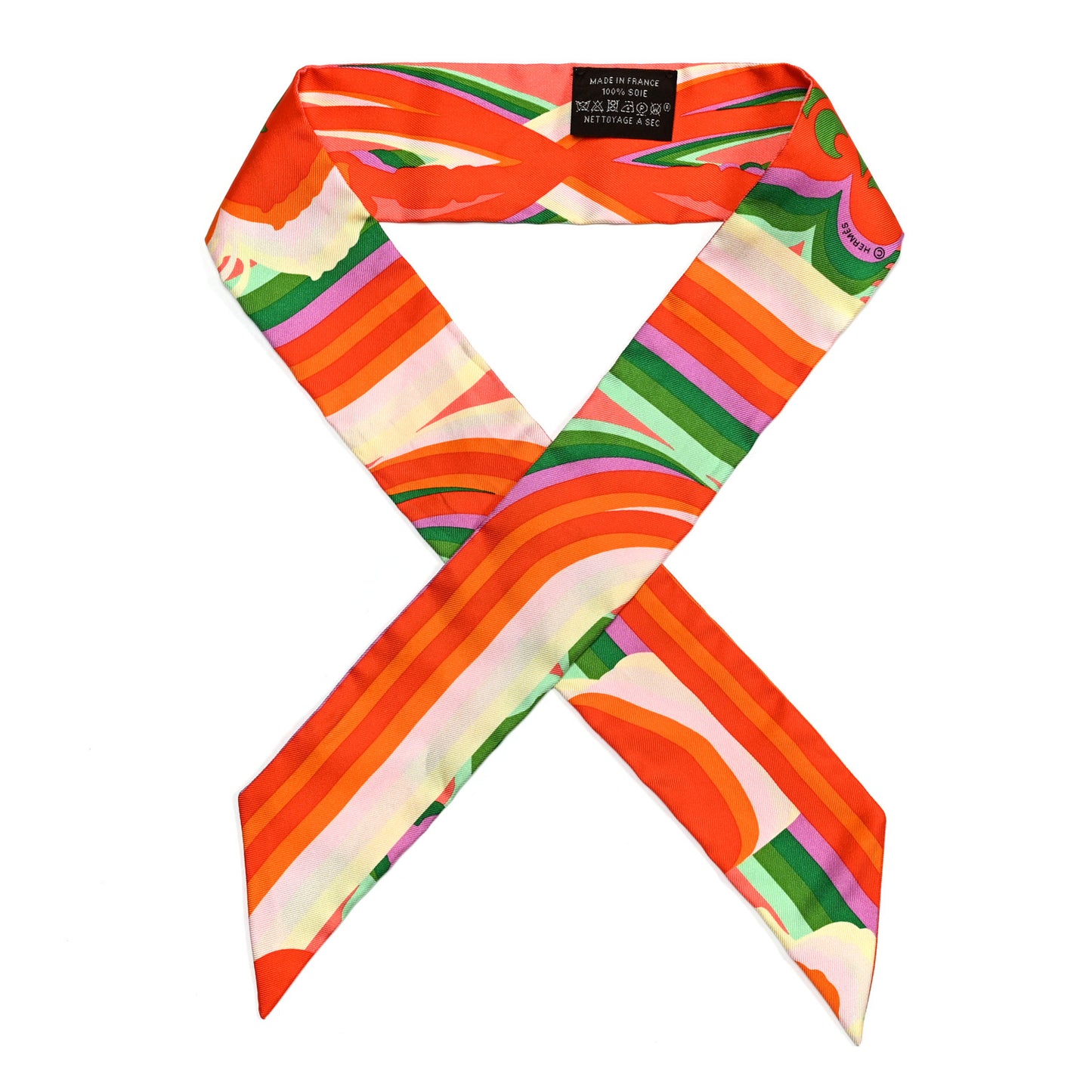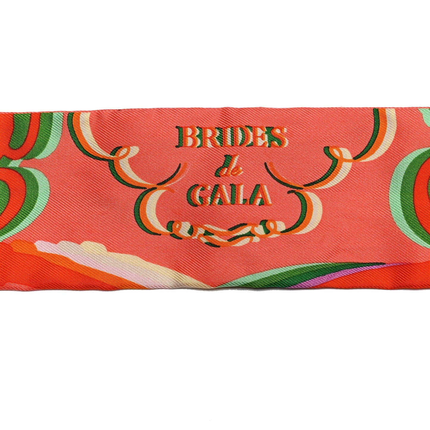Hermes/ Accessories/ Scarves /Hermes Silk Brides De Gala Shadow Twilly Orange Vert Corail