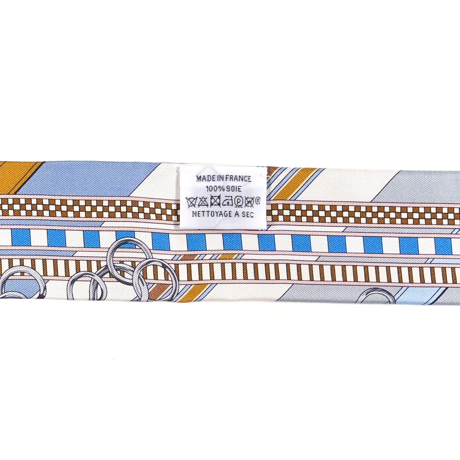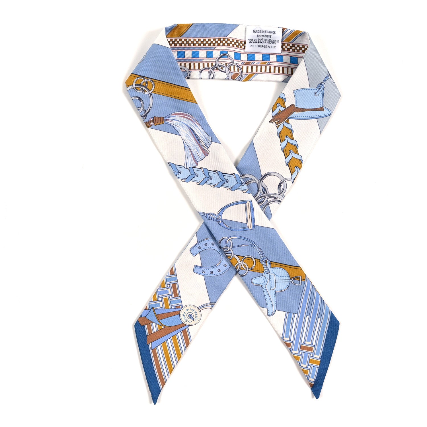 Hermes/ Accessories/ Scarves /Hermes Silk Brides et Gris Twilly Gris Bleu Jean White Miel