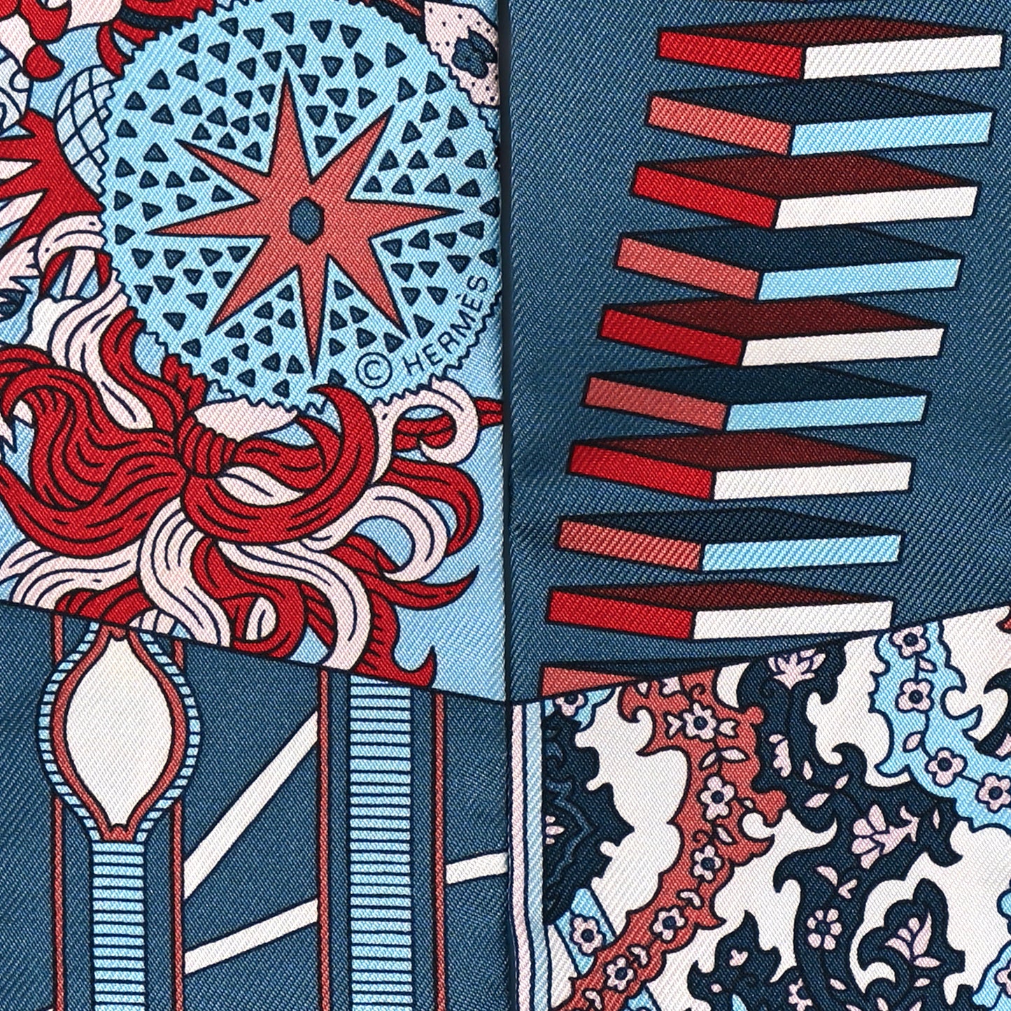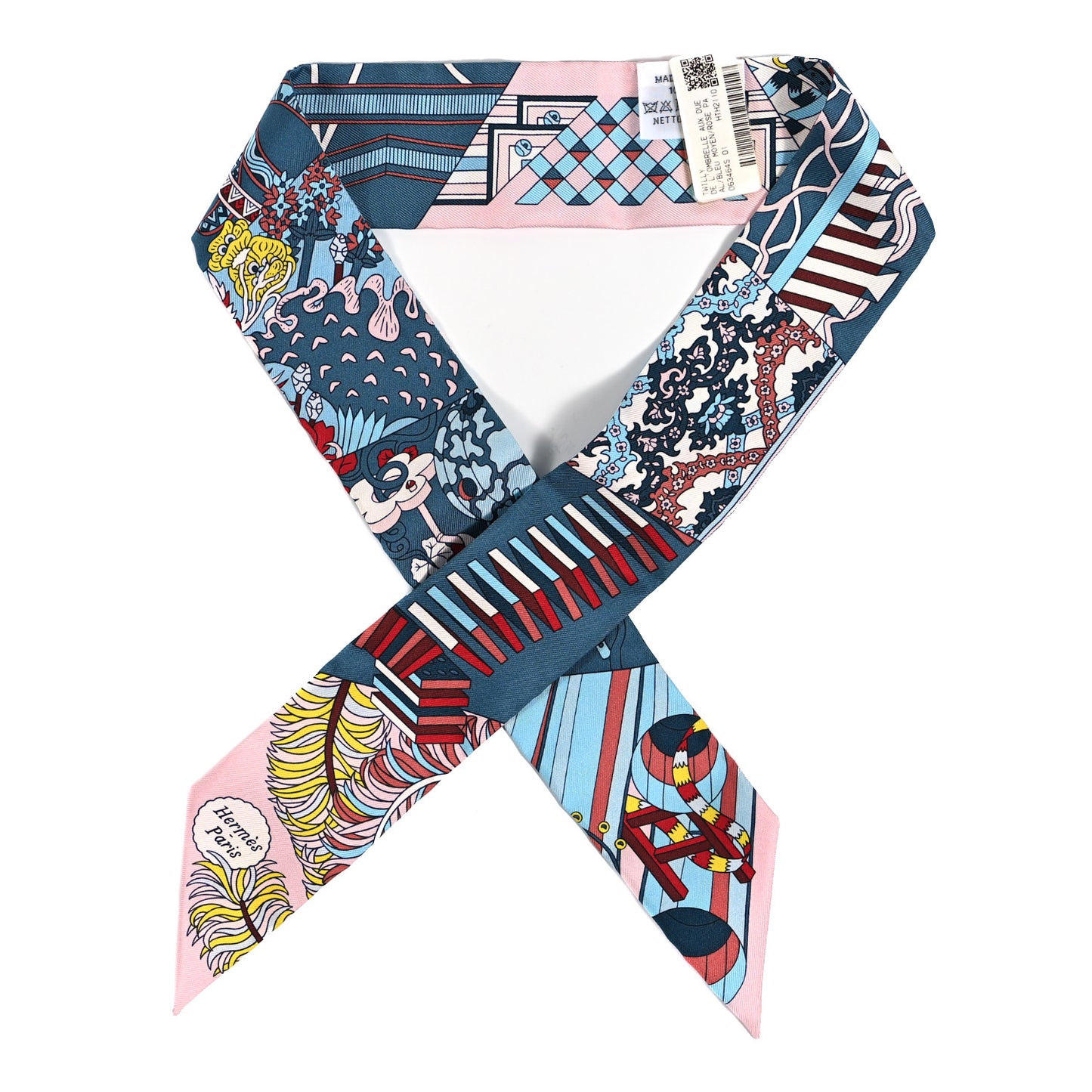 Hermes/ Accessories/ Scarves /Hermes Silk De l'Ombrelle Aux Duels Twilly Bleu Moyen Rose Pale