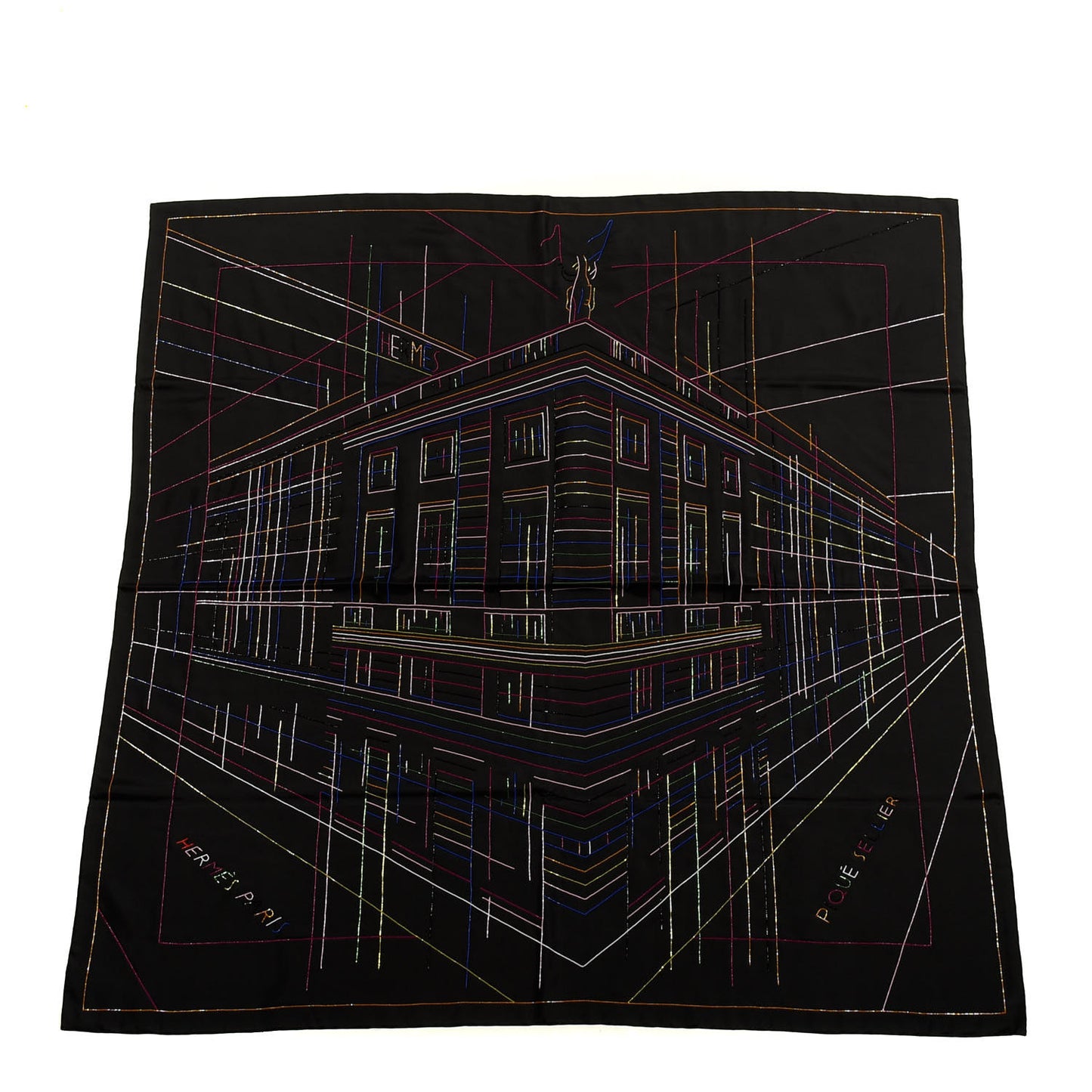 Hermes/ Accessories/ Scarves /Hermes Silk Embroidered Giant Pique Sellier Perle Scarf 140 Black Multicolor
