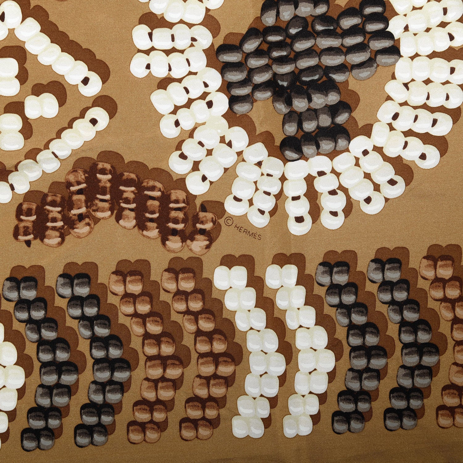 Silk Kelly En Perles Wash Scarf 140 Camel Taupe Nacre
