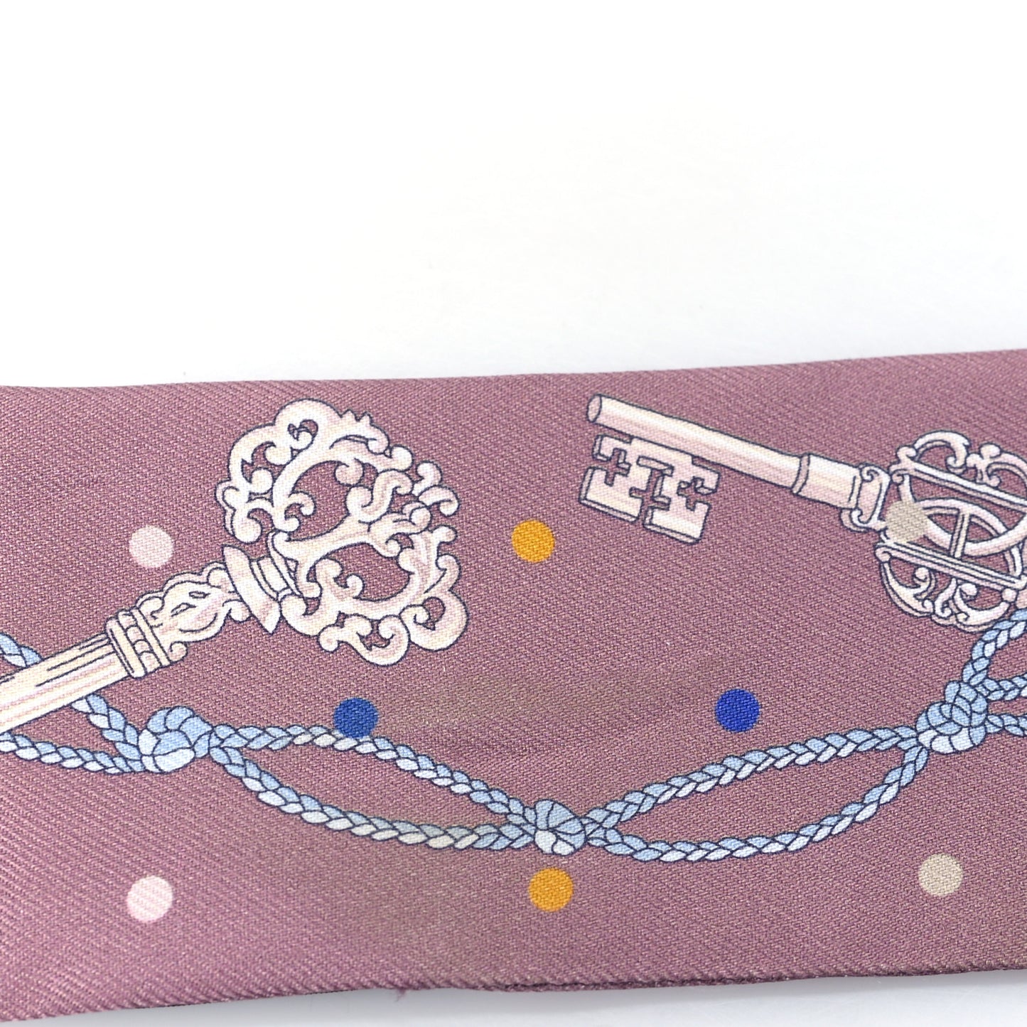 This is an authentic HERMES Silk Les Cles A Pois Twilly in Marron Glace and Gris. This beautiful 100% silk scarf features an array of ornate keys and tassels on a light maroon background.Follow this item for alerts. Hermes is a registered trademark of Hermes. FASHIONPHILE is not affiliated with Hermes.