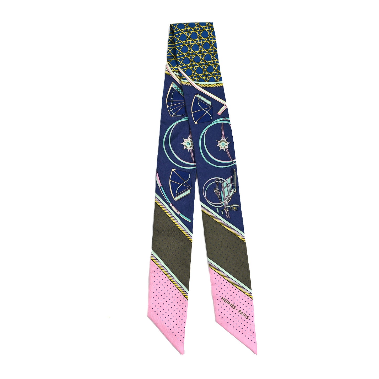 Hermes/ Accessories/ Scarves /Hermes Silk Les Voitures A Transformation Twilly Encre Kaki Rose