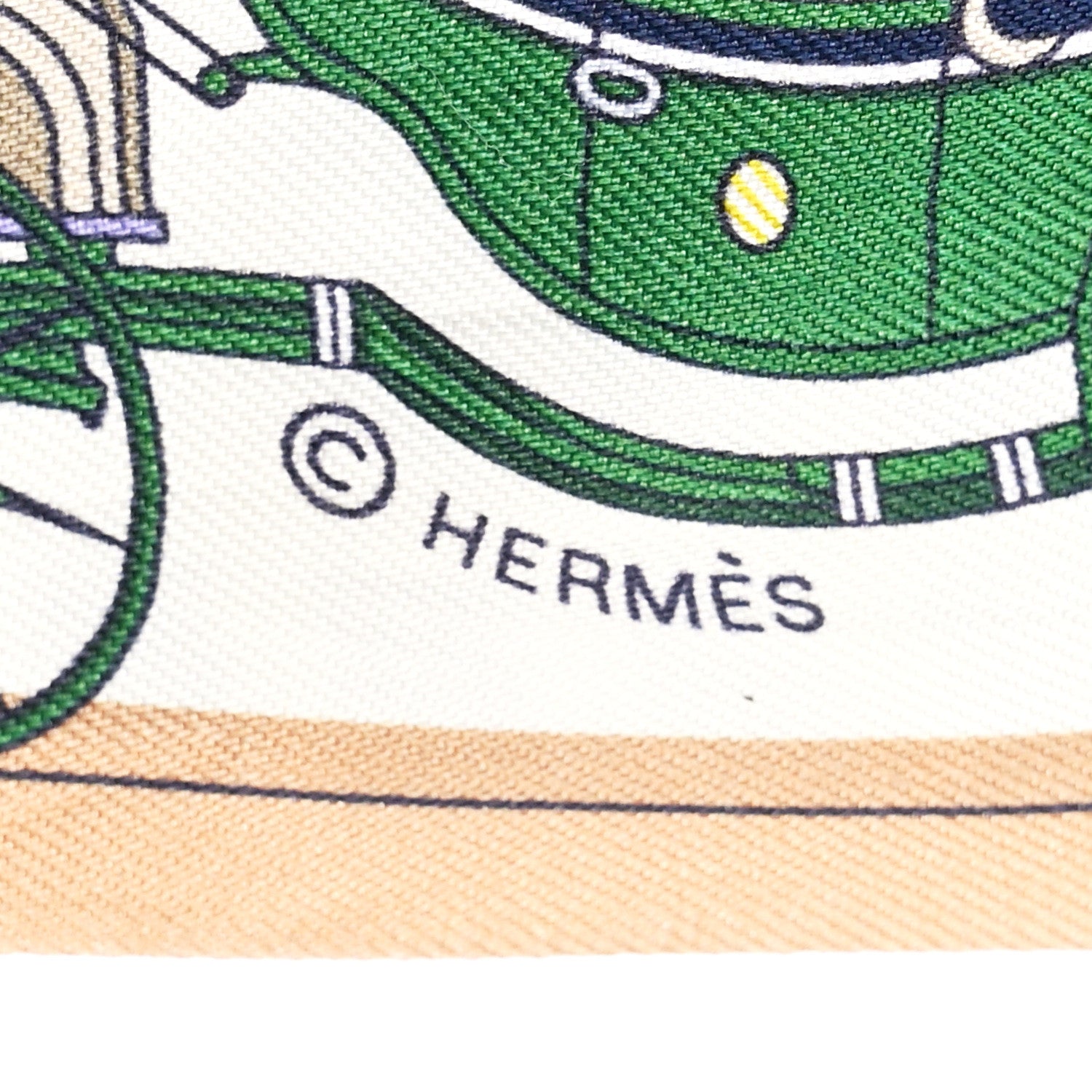 This is an authentic HERMES Silk Les Voitures Nouvelles Twilly in Bleu, Beige and Rouge H. This silk scarf features a design of horse-drawn carriages in navy and gold on a white background.Follow this item for alerts. Hermes is a registered trademark of Hermes. FASHIONPHILE is not affiliated with Hermes.