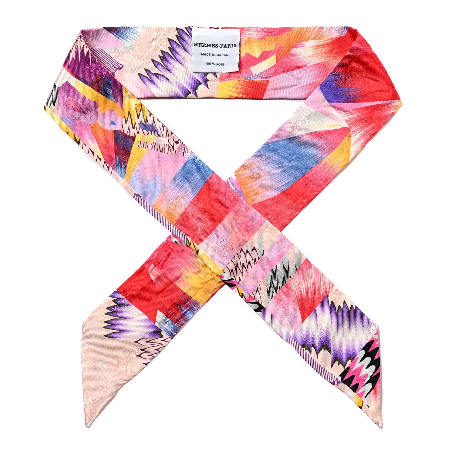 This is an authentic HERMES Silk Marble Silk Twilly in Rose, Vert, and Violet. This scarf is crafted of 100% silk on a multicolor background.Follow this item for alerts. Hermes is a registered trademark of Hermes. FASHIONPHILE is not affiliated with Hermes.