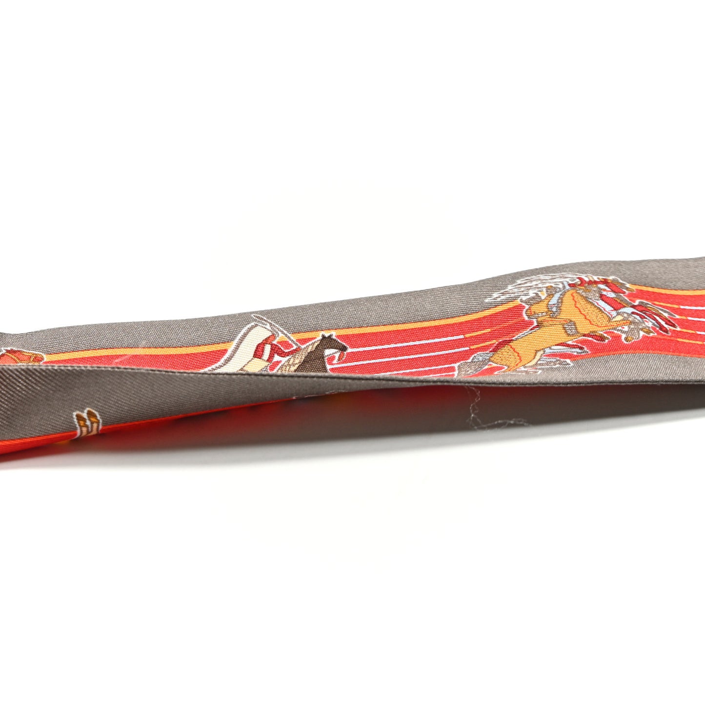 This is an authentic HERMES Silk Pani La Shar Pawnee Twilly in Etoupe, Rouge and Orange. This 100% fine silk bandeau scarf features a bold and bright decorative design with different horses motif.Follow this item for alerts. Hermes is a registered trademark of Hermes. FASHIONPHILE is not affiliated with Hermes.