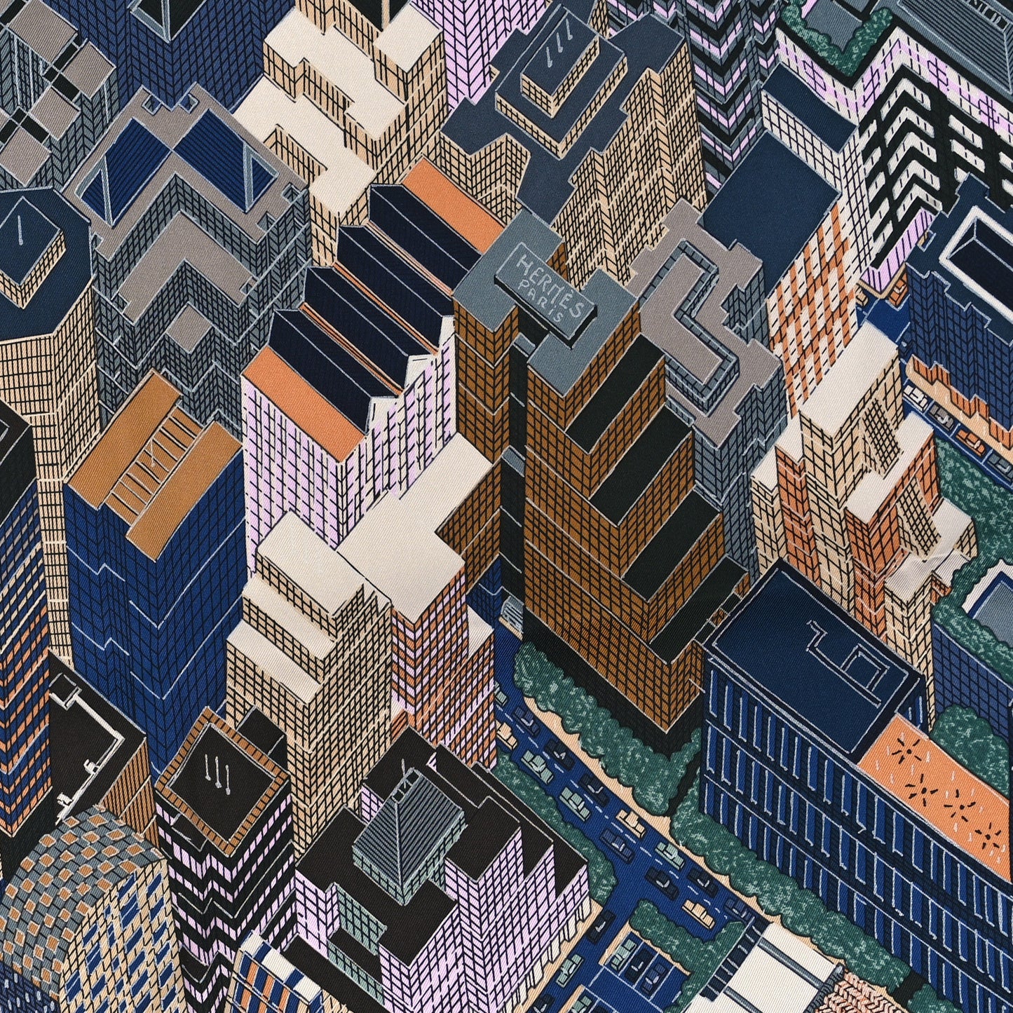 Hermes/ Accessories/ Scarves /Hermes Silk Pantin City Scarf 90 Marine Beige Parme