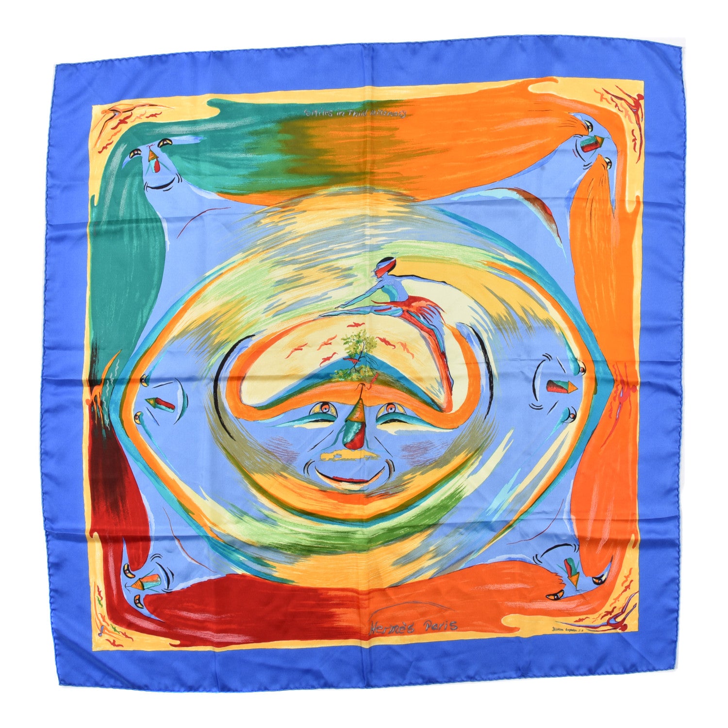 This is an authentic HERMES Silk Smiles In Third Millenary Scarf size 90. The exceptional quality and charming beauty of this Hermes scarf make it an iconic fashion accessory. This is a 100% silk scarf with a colorful design with blue border.Follow this item for alerts. Hermes is a registered trademark of Hermes. FASHIONPHILE is not affiliated with Hermes.