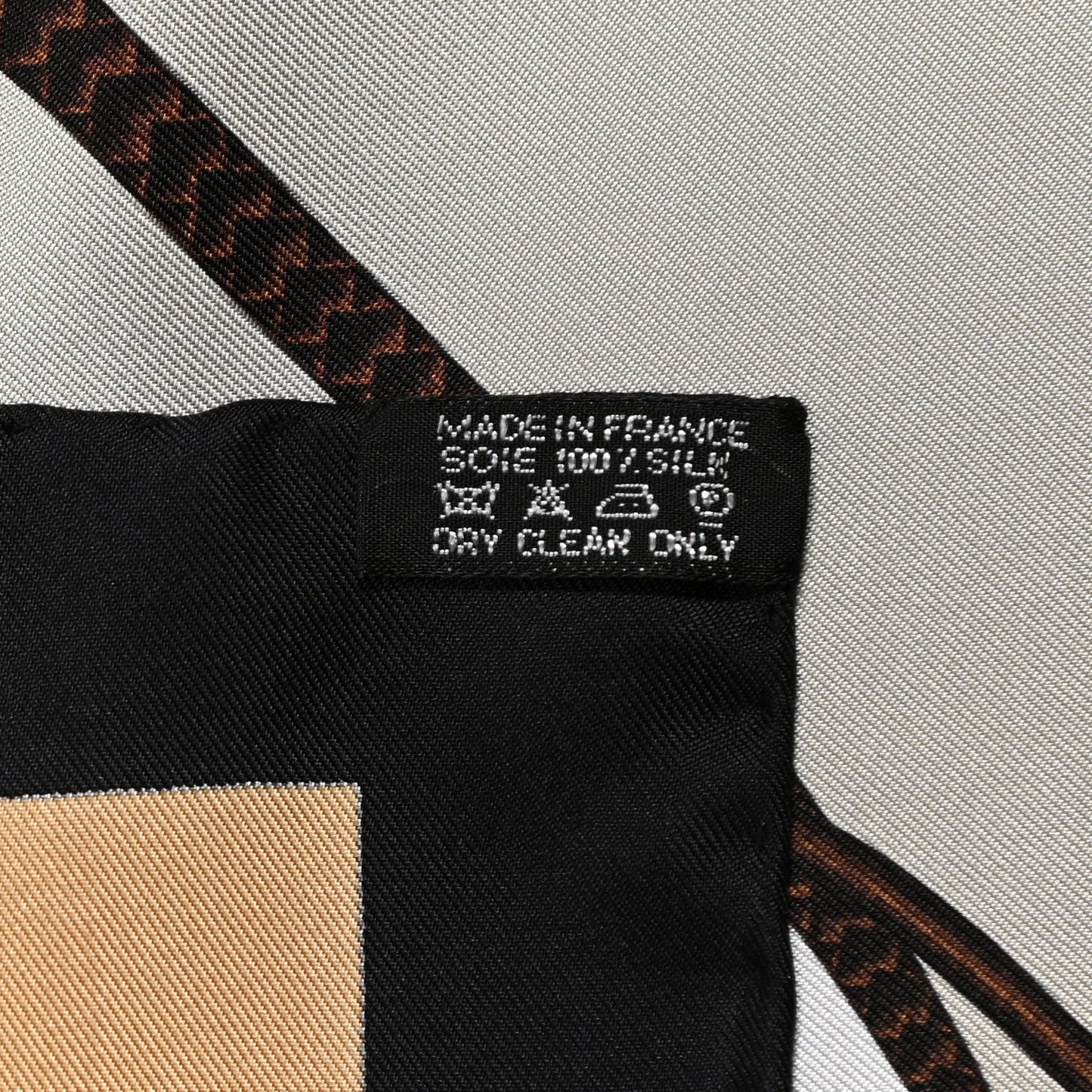 Hermes/ Accessories/ Scarves /Hermes Silk Soie Coup De Fouet Scarf 90 Black Etoupe Gris