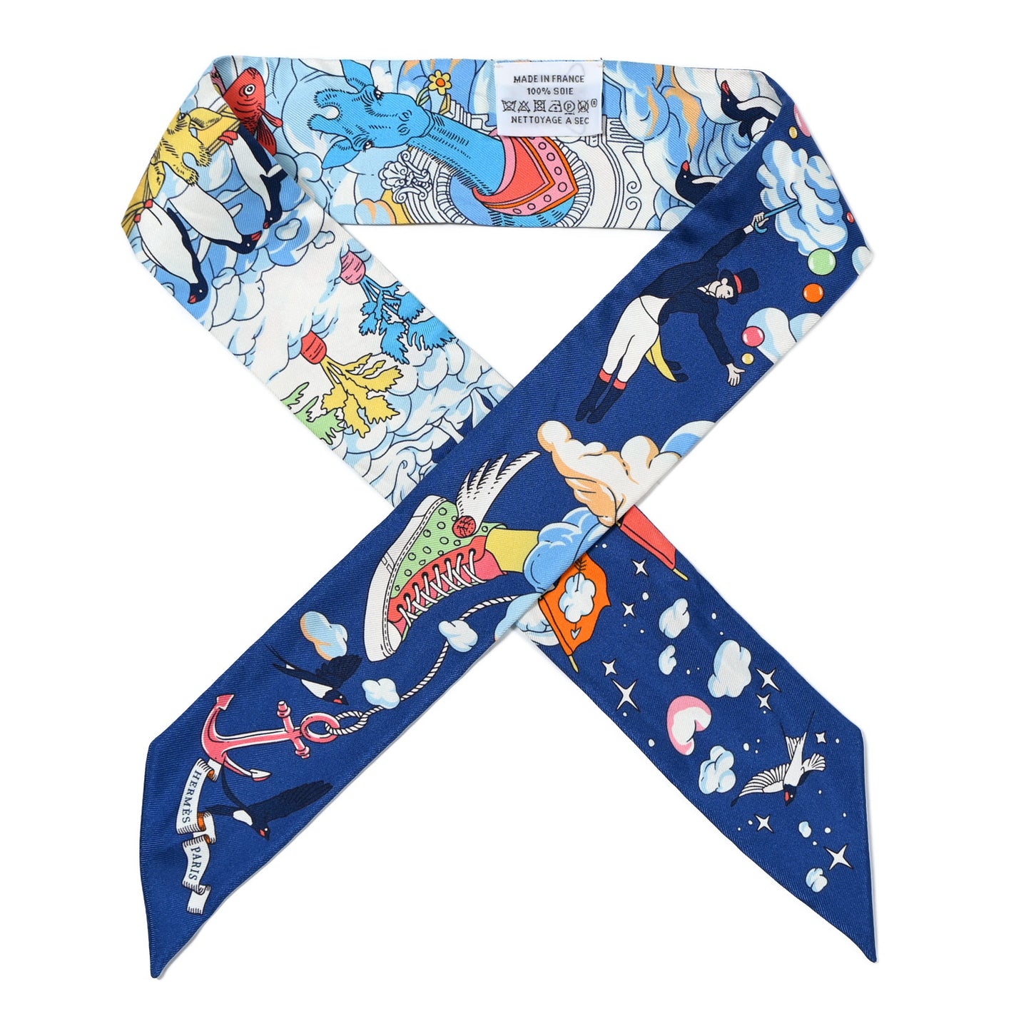 This is an authentic HERMES Silk Sur Mon Nuage Twilly in Marine Clair and Ciel. This 100% silk twill scarf features a multicolor design on animals and clouds on a blue background.Follow this item for alerts. Hermes is a registered trademark of Hermes. FASHIONPHILE is not affiliated with Hermes.