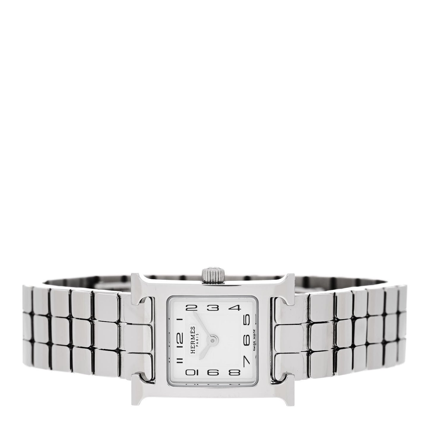 This is an authentic HERMES Stainless Steel 17.2mm Heure H Hour Quartz Watch. The watch is crafted of stainless steel and features a white dial, silver hands, Arabic numeral hour markers, sapphire crystal and a quartz movement.Follow this item for alerts. Hermes is a registered trademark of Hermes. FASHIONPHILE is not affiliated with Hermes.