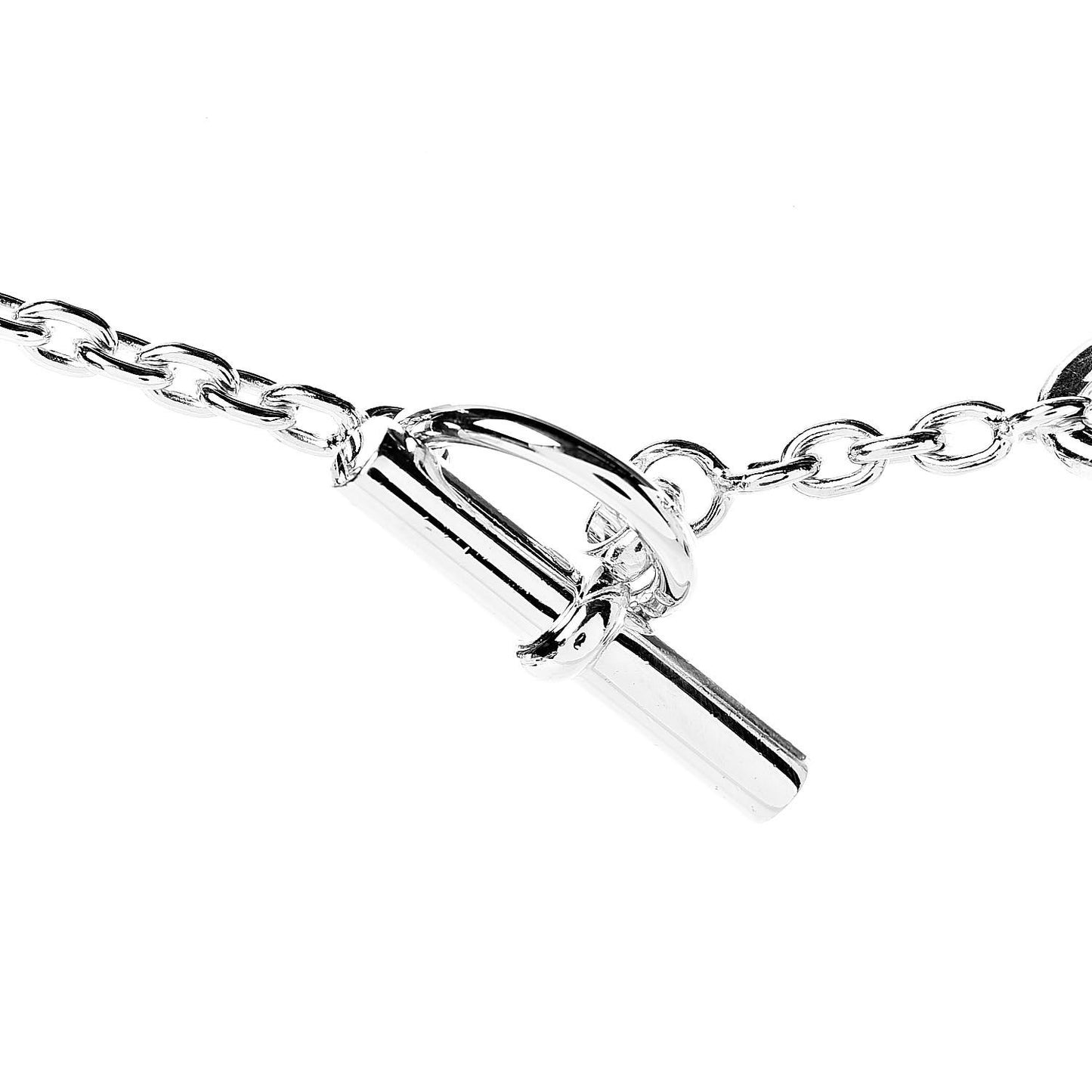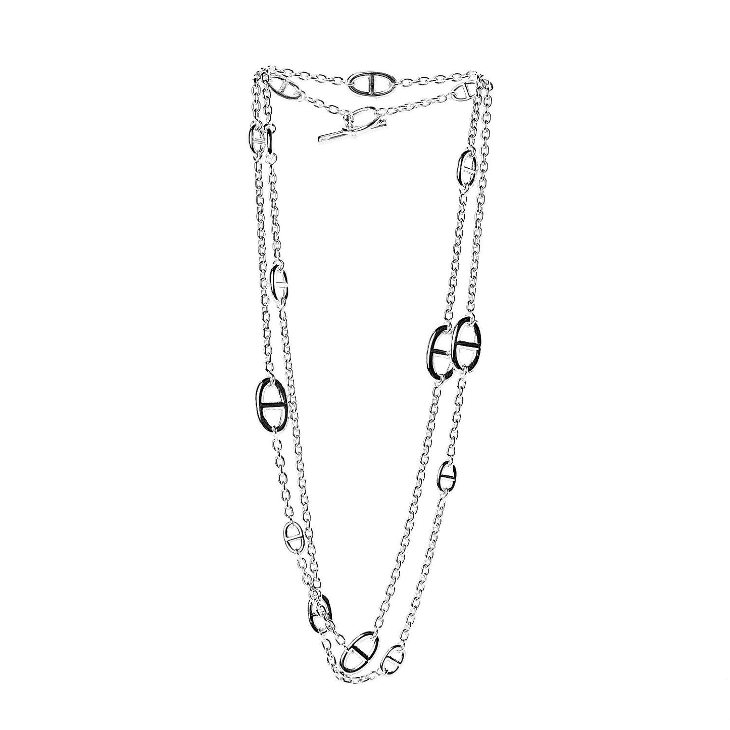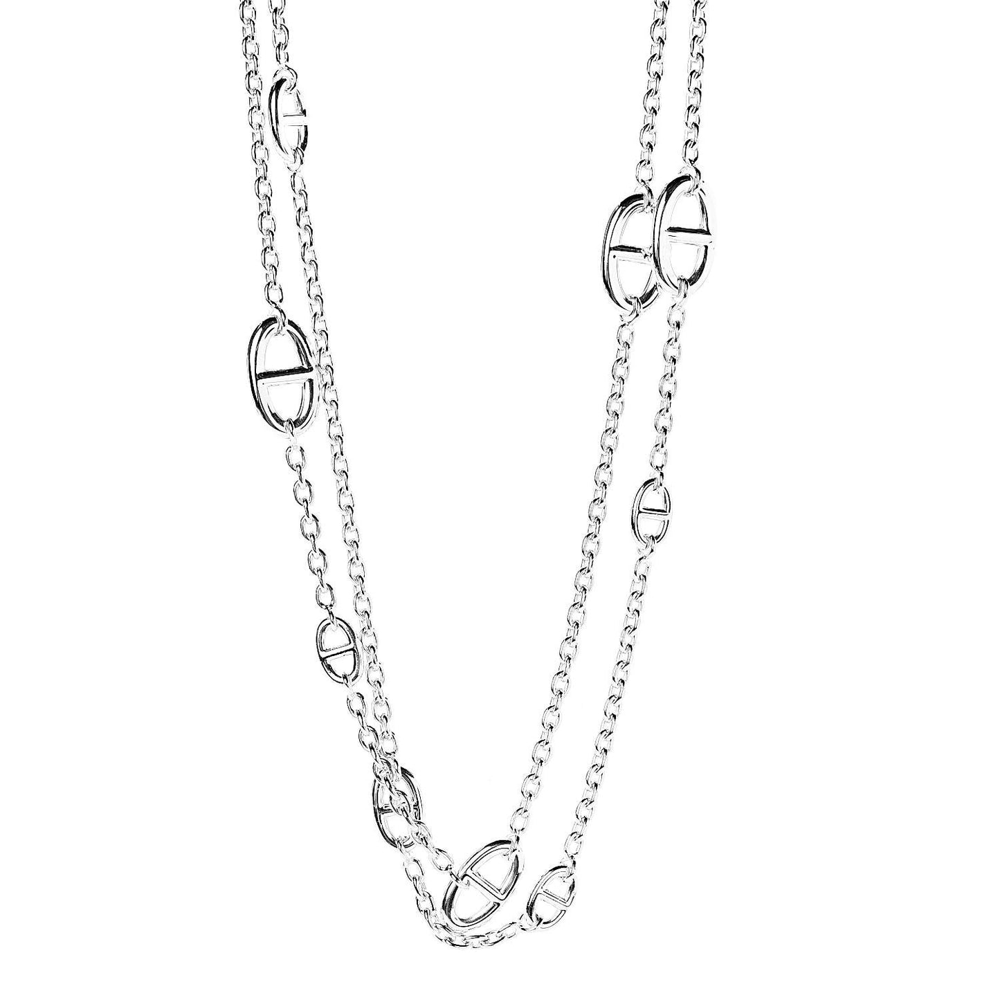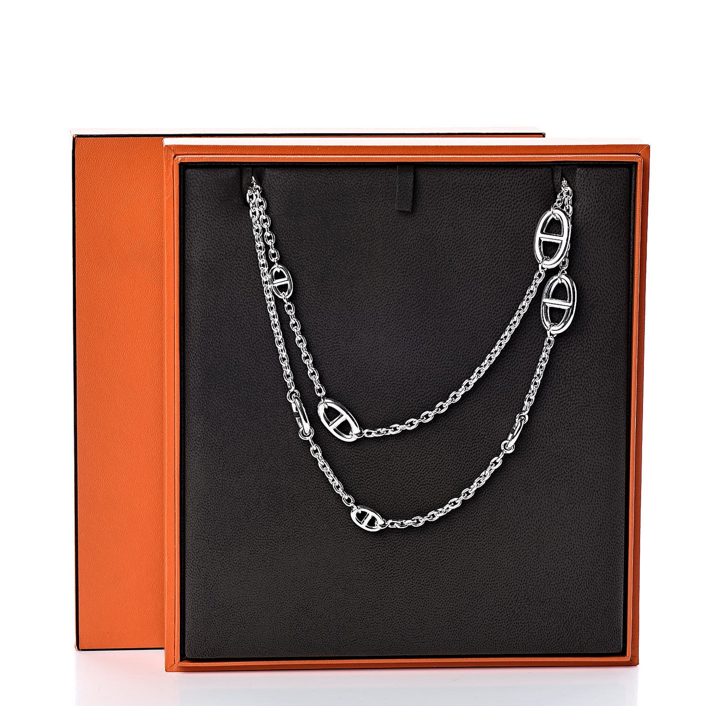 This is an authentic HERMES Sterling Silver Farandole Necklace 120. This stunning necklace is crafted of sterling silver and features chaine d'ancre links in various sizes along the chain. This necklace can be worn full length or can be doubled for a one of a kind look only from Hermes!Follow this item for alerts. Hermes is a registered trademark of Hermes. FASHIONPHILE is not affiliated with Hermes.
