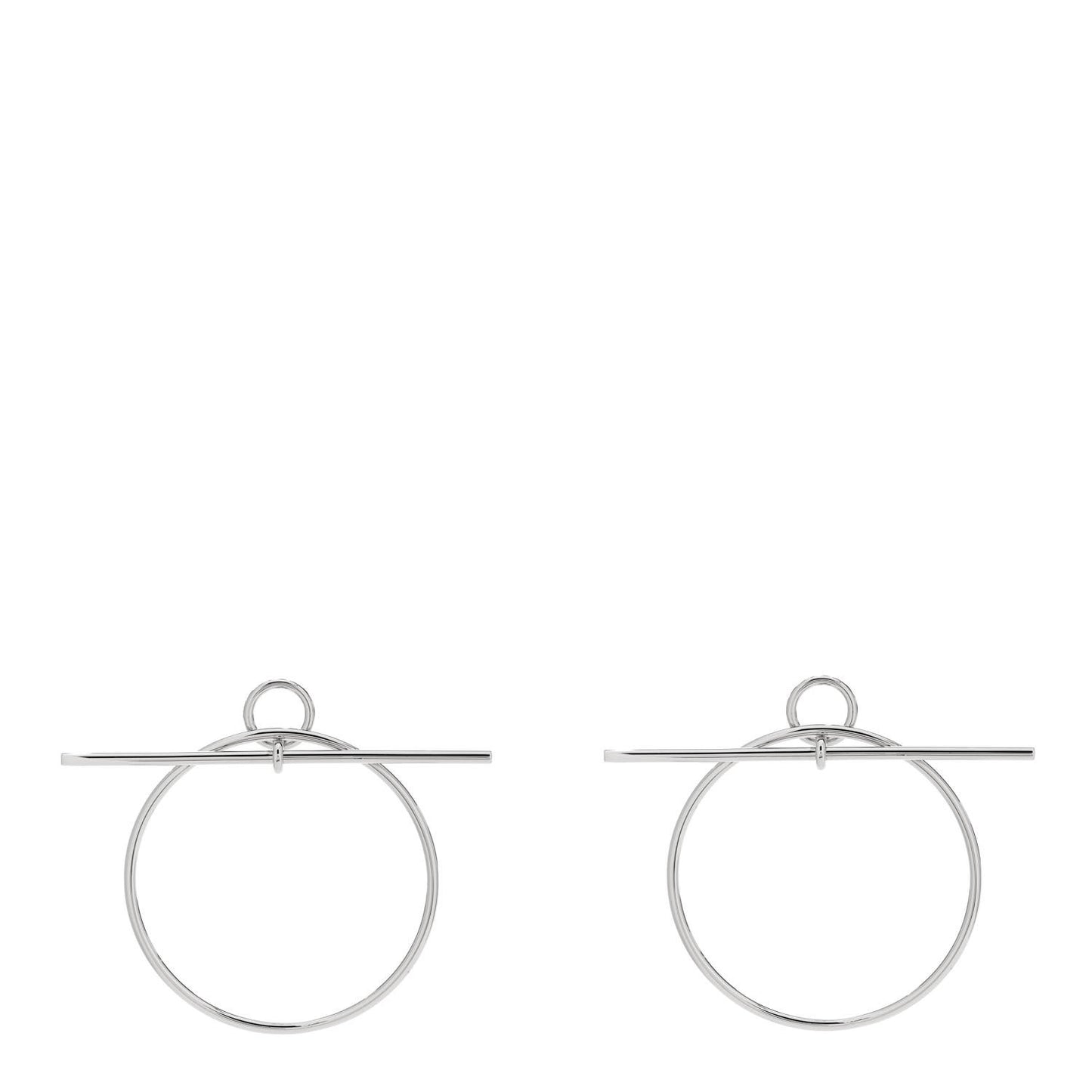 This is an authentic pair of HERMES Sterling Silver MM Loop Earrings. The earrings are crafted of sterling silver and feature polished bar-and-ring motifs.Follow this item for alerts. Hermes is a registered trademark of Hermes. FASHIONPHILE is not affiliated with Hermes.