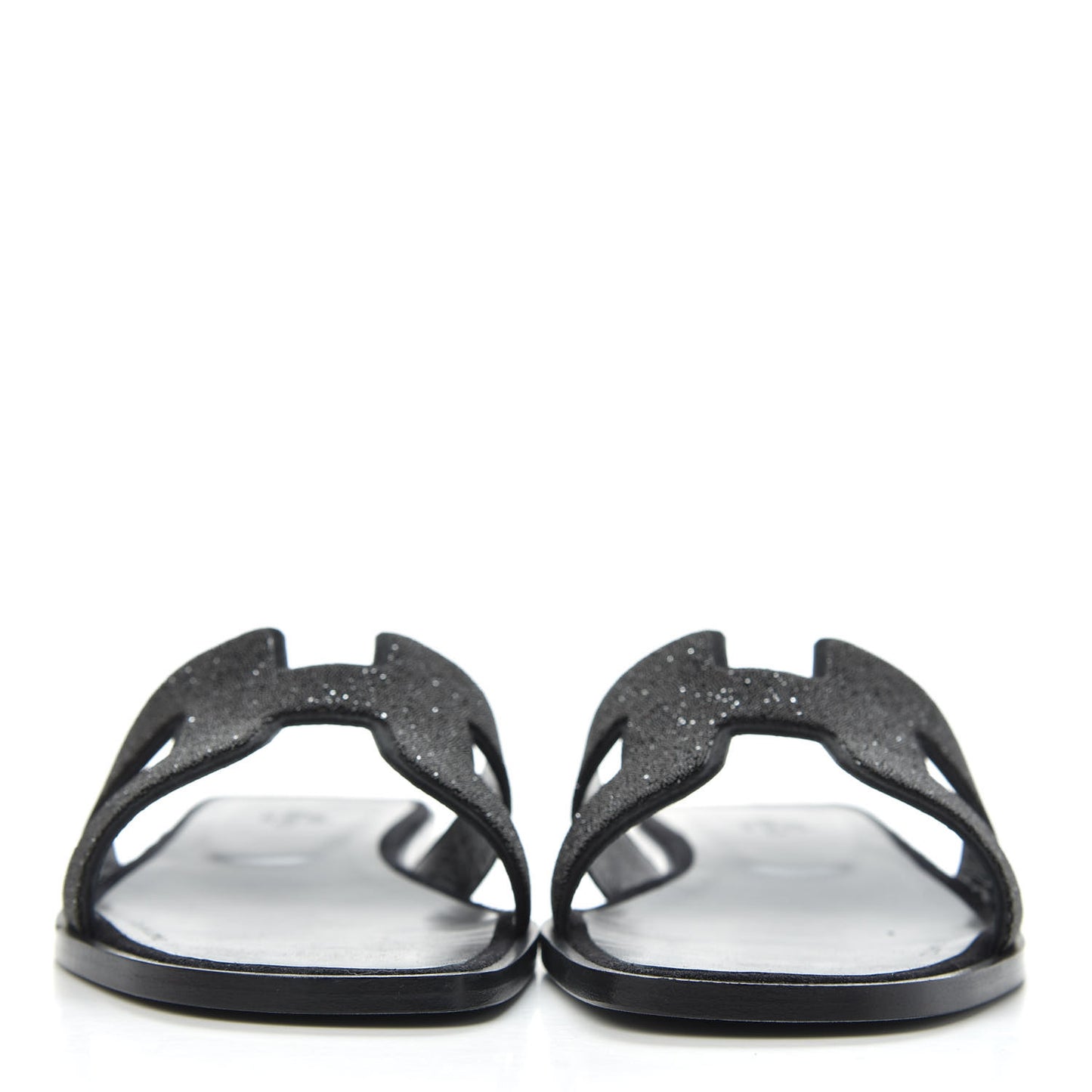 Hermes/ Accessories/ Shoes /Hermes Suede Goatskin Crystal Powder Oran Sandals 38.5 Black