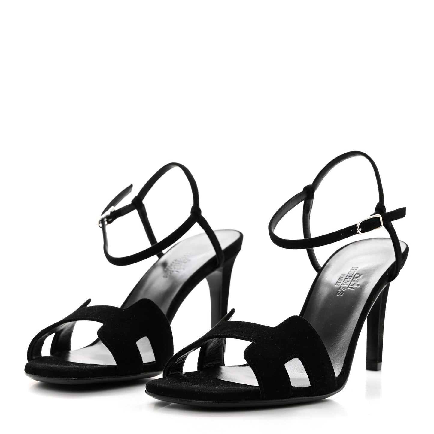 Hermes/ Accessories/ Shoes /Hermes Suede Goatskin Heden 80 Sandals 37.5 Black