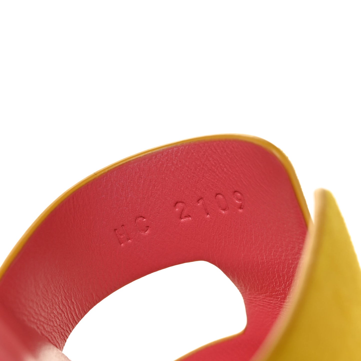 This is an authentic pair of HERMES Suede Goatskin Oran Sandals size 37 in Jaune Sable. These stylish sandals are crafted of yellow fabric with an iconic Hermes H toe strap.Follow this item for alerts. Hermes is a registered trademark of Hermes. FASHIONPHILE is not affiliated with Hermes.