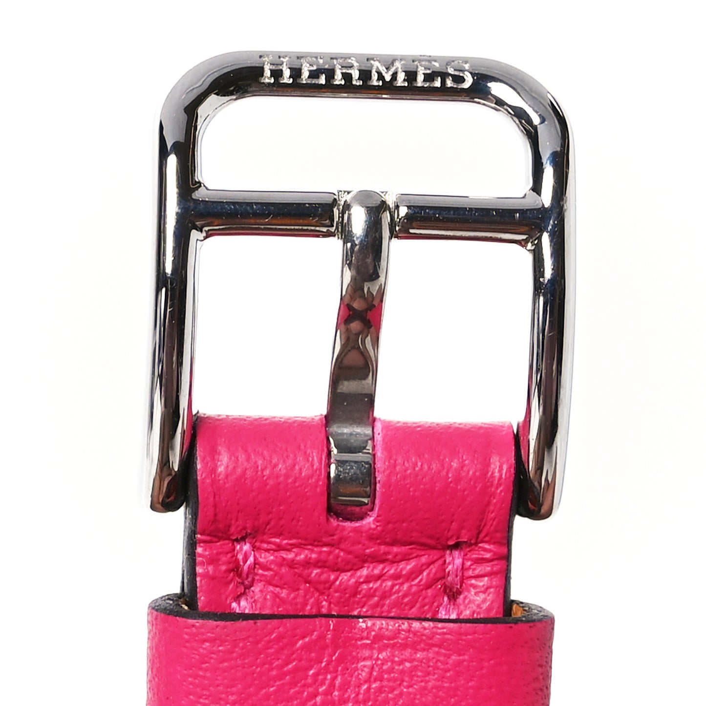 This is an authentic HERMES Swift 41mm Apple Watch Double Tour Band in Rose Mexico. This watch band is crafted of swift calfskin leather in pink with palladium silver hardware.