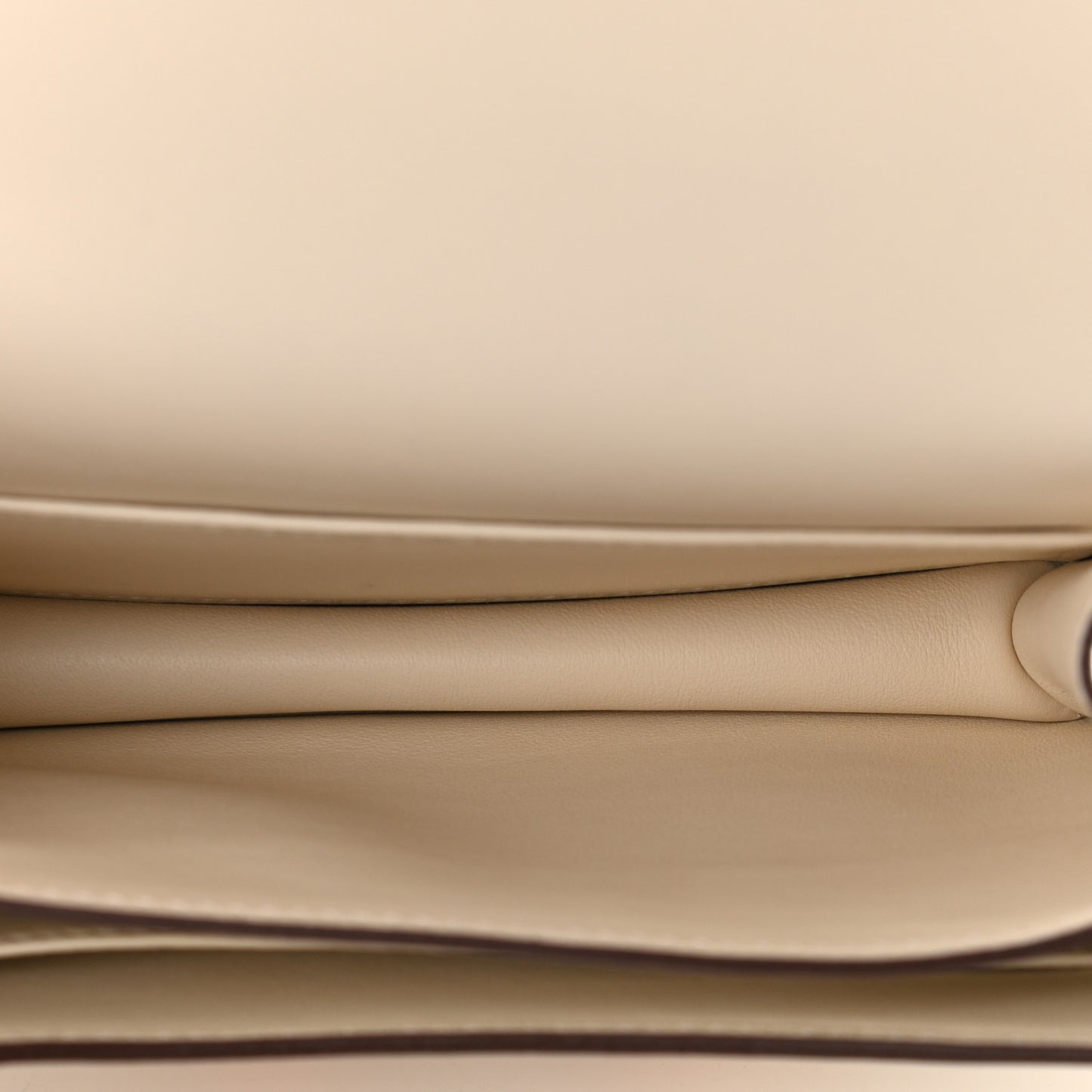 This is an authentic HERMES Swift Constance 18 in Nata. This is a chic small bag that is finely crafted of luxurious Swift calfskin leather in off-white. The bag features a leather crossbody strap and a frontal flap with a rose gold plated Hermes H clasp that opens to a partitioned leather interior with flat pockets.Follow this item for alerts. Hermes is a registered trademark of Hermes. FASHIONPHILE is not affiliated with Hermes.