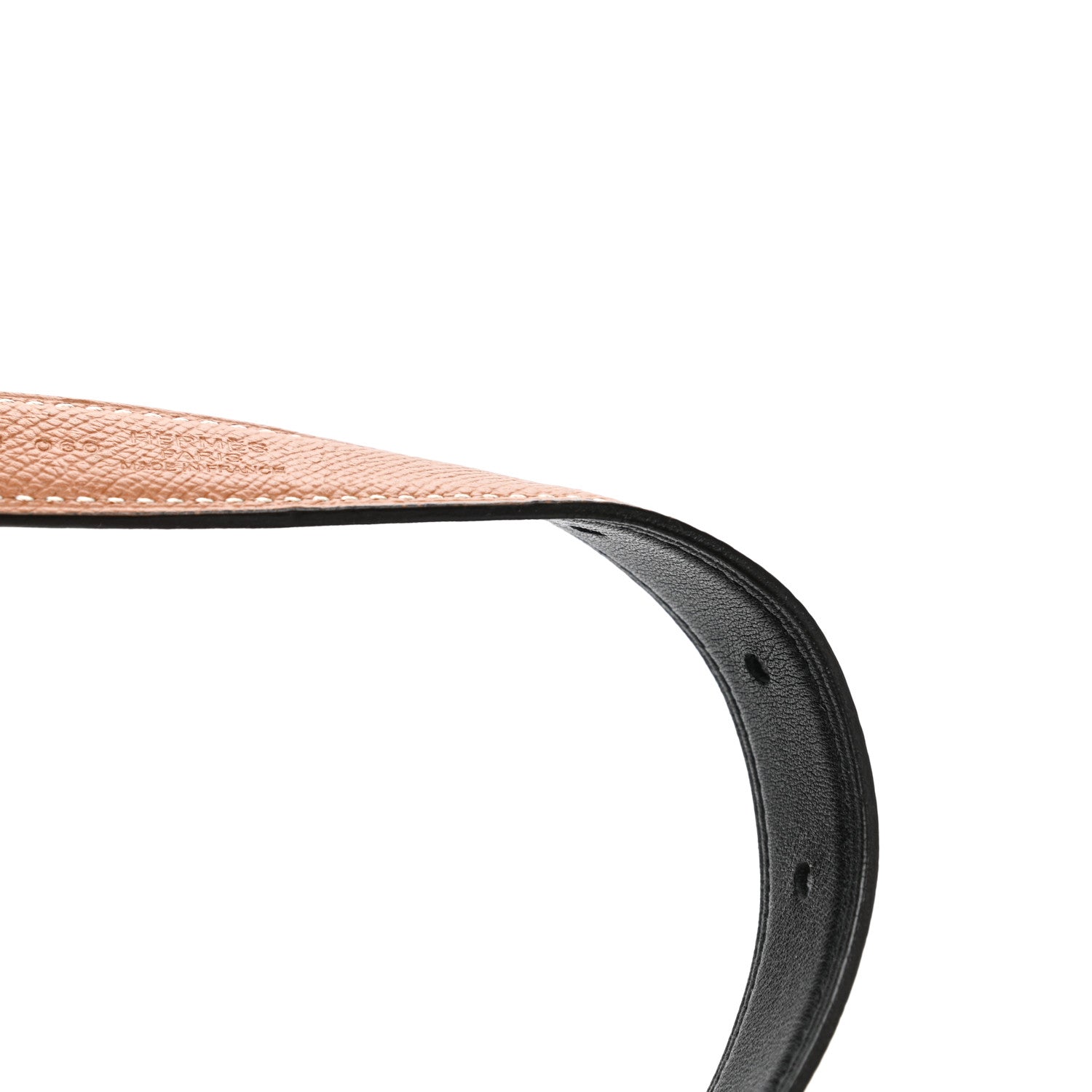 This is an authentic HERMES Swift Epsom 24mm Mini Constance H Belt size 75 in Black and Gold. This stylish reversible belt is crafted of calfskin leather in black, with an epsom leather lining in dark brown and a polished rose gold plated Hermes H buckle.Follow this item for alerts. Hermes is a registered trademark of Hermes. FASHIONPHILE is not affiliated with Hermes.