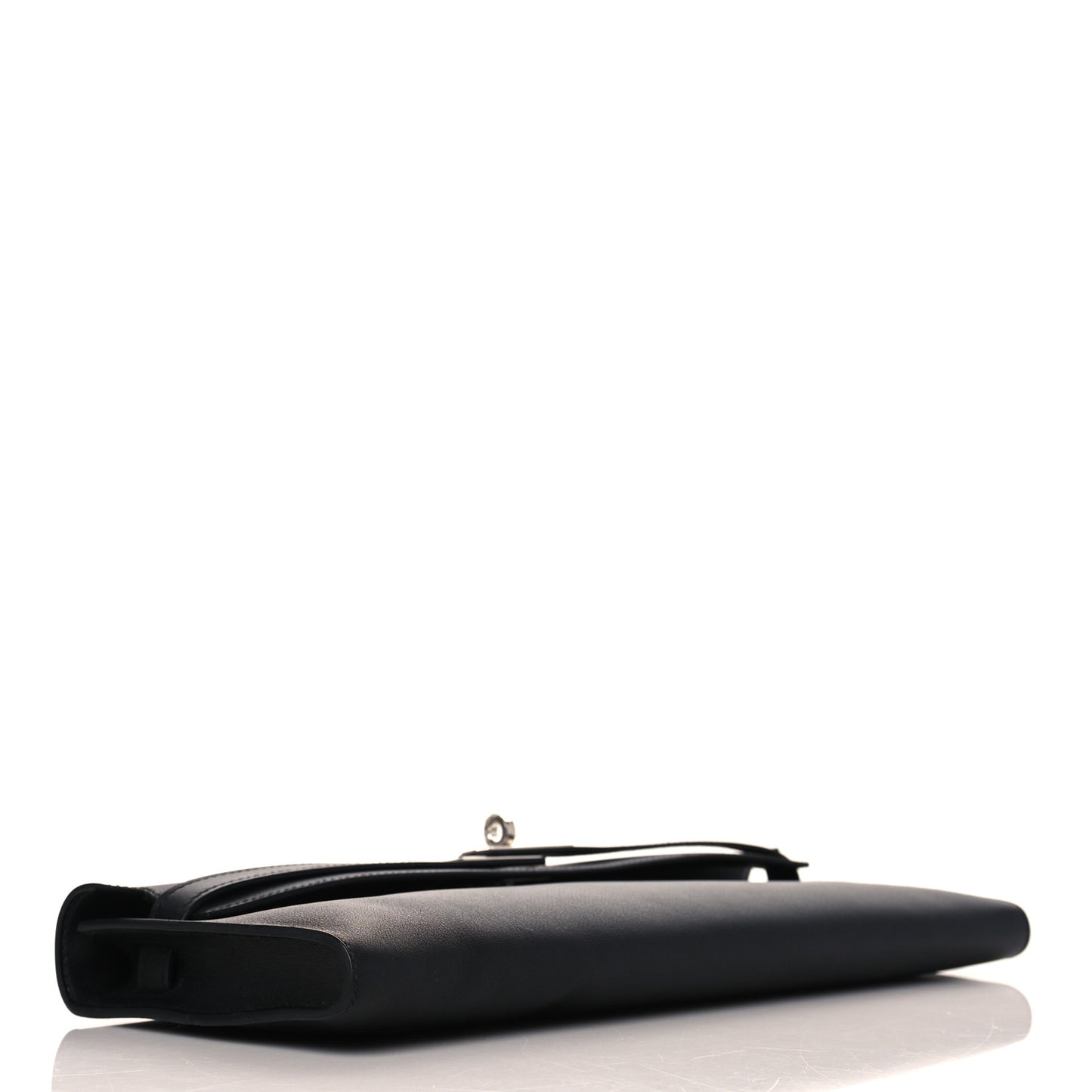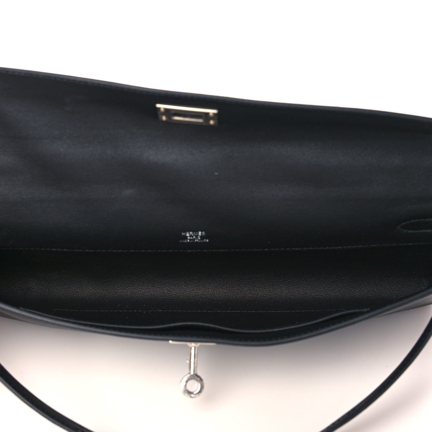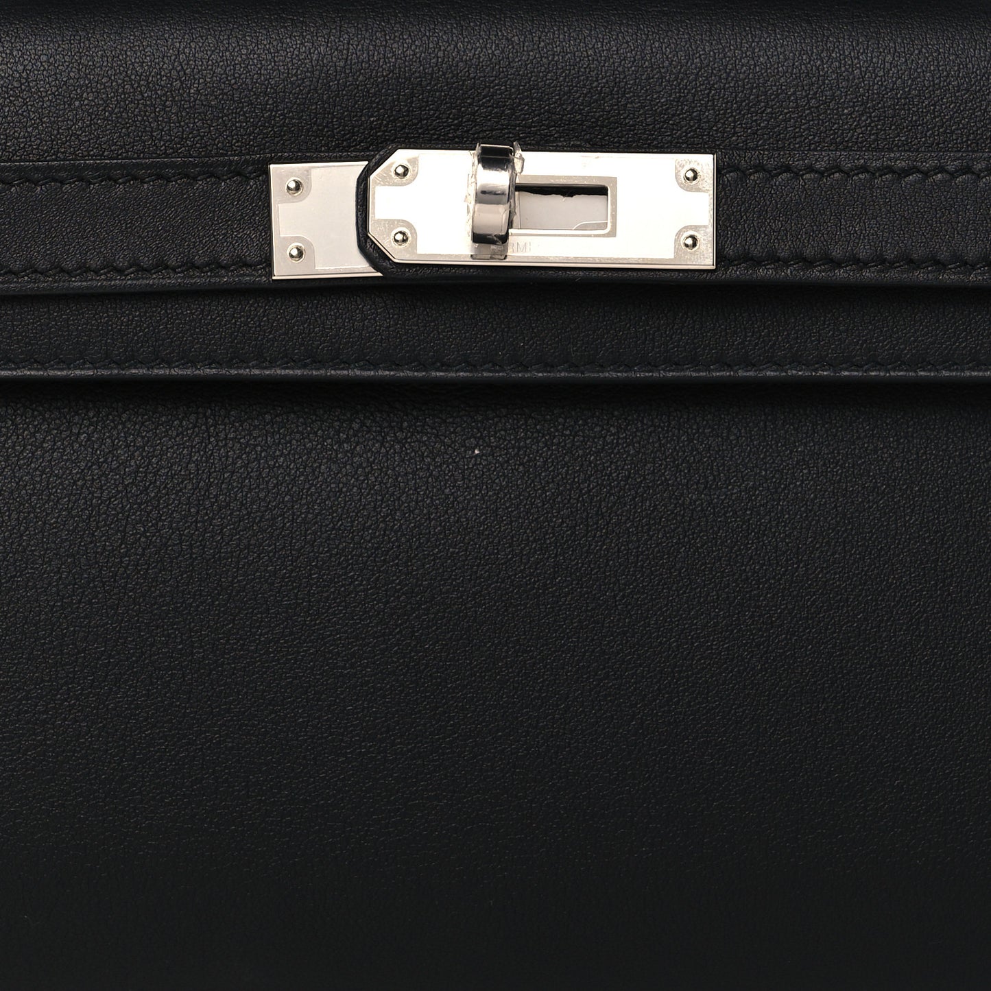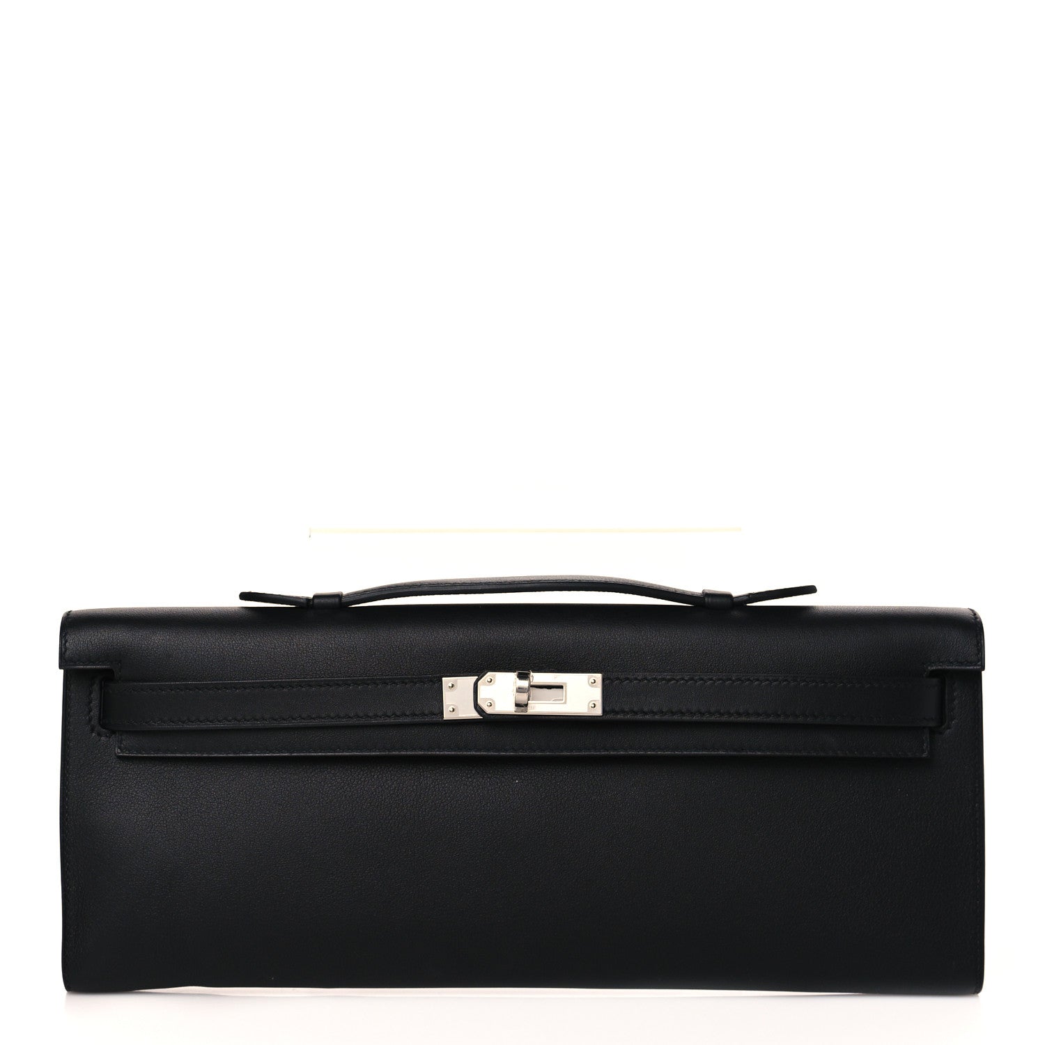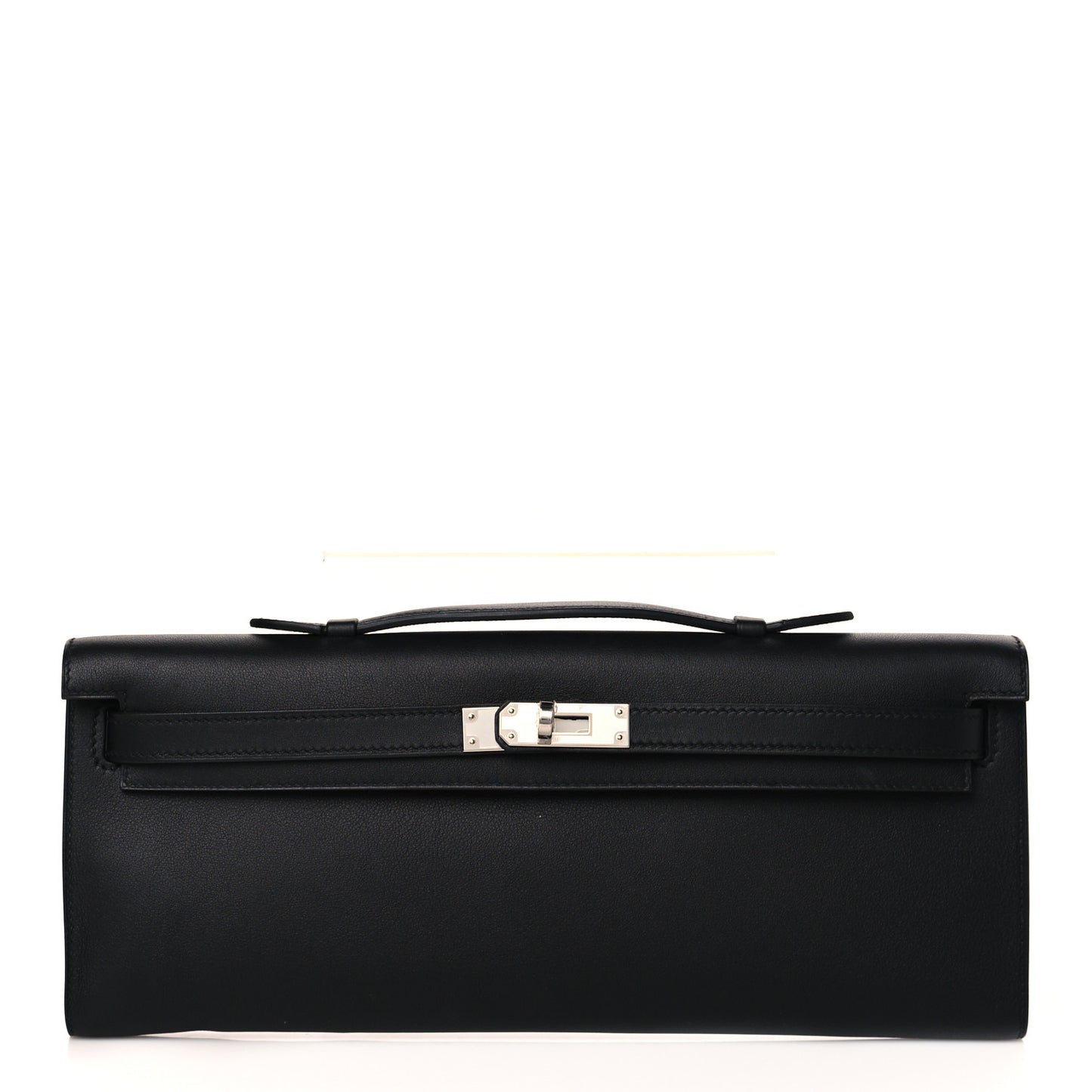 This is an authentic HERMES Swift Kelly Cut Clutch Pochette in Black. This chic clutch is crafted of fine swift calfskin leather in black. In the style of the Kelly handbags, the clutch has a leather strap handle, a cross-over flap, and strap closure with palladium turn lock. This opens to a matte black leather interior with a patch pocket.Follow this item for alerts. Hermes is a registered trademark of Hermes. FASHIONPHILE is not affiliated with Hermes.
