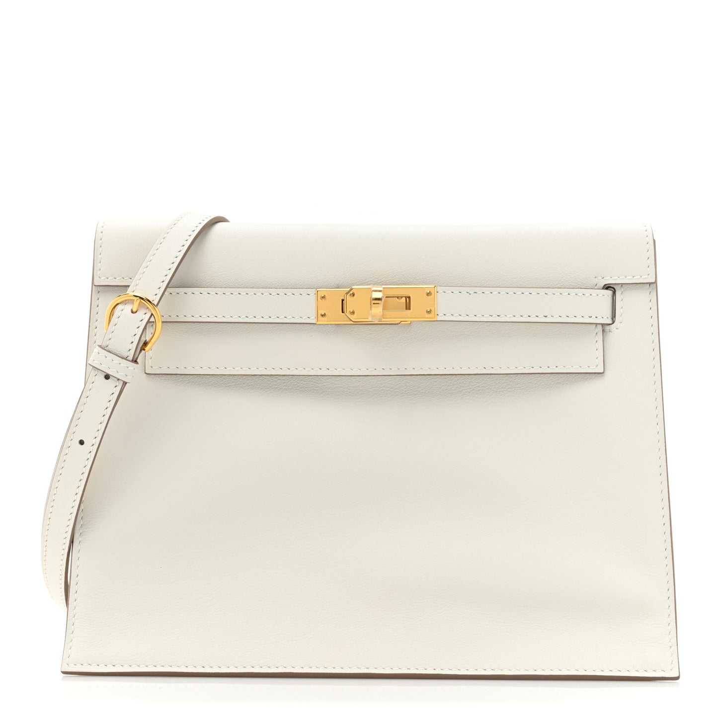 This is an authentic HERMES Swift Kelly Danse II Belt Bag in Gris Pale. This chic waist bag is finely crafted of smooth light grey swift leather. This belt bag features an adjustable strap and a frontal flap with a classic gold plated Hermes Kelly turn-lock that opens to a matching leather interior with a small patch pocket.Follow this item for alerts. Hermes is a registered trademark of Hermes. FASHIONPHILE is not affiliated with Hermes.