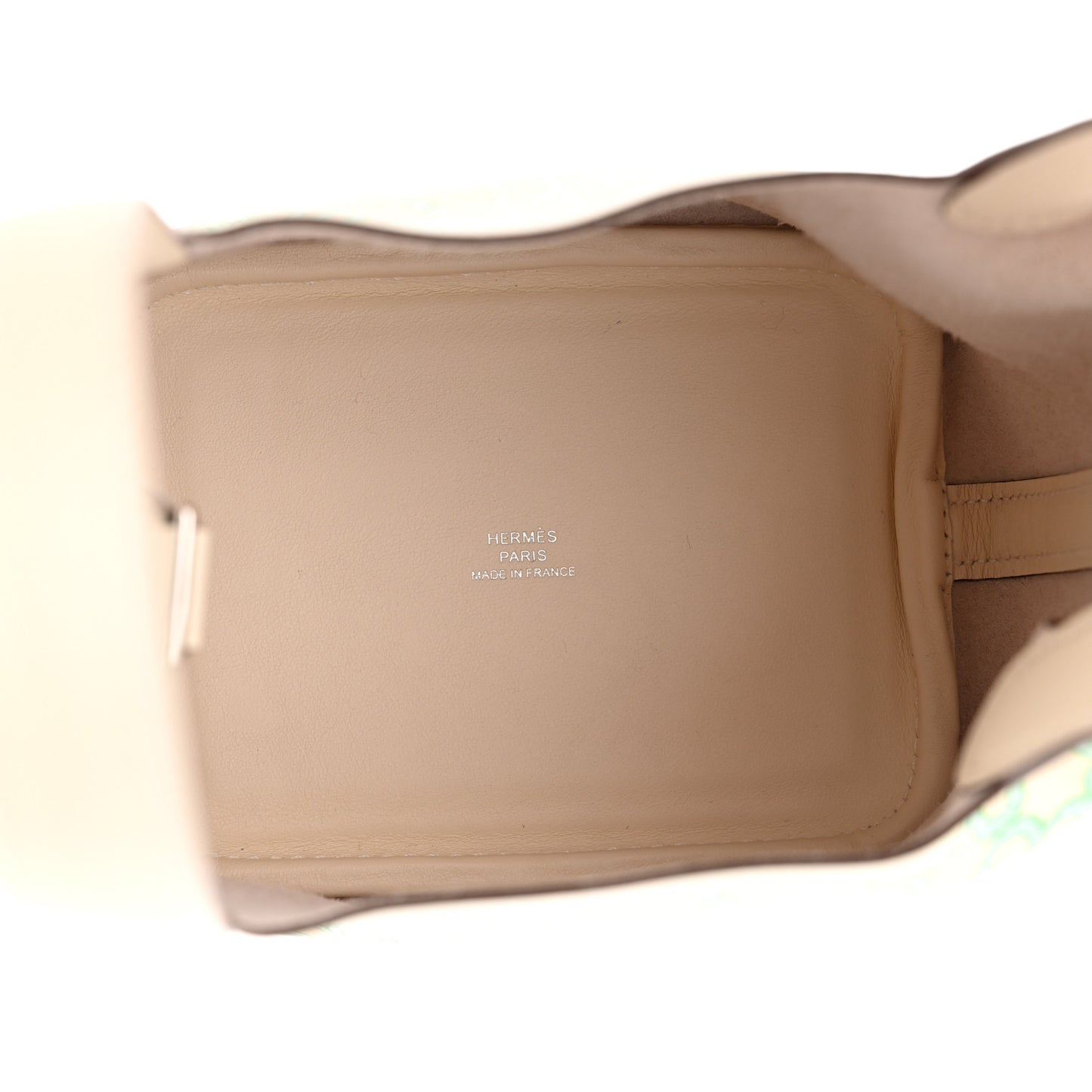 This is an authentic HERMES Swift Micro Lucky Daisy Picotin Lock in Nata and Vert. This chic tote is crafted of swift calfskin leather in beige with silver palladium plated hardware and a green floral print. This one-piece handbag features strap handles that extend from the sides with an extra layer of leather for support. The handbag opens to a spacious suede interior and can be secured with the included padlock.