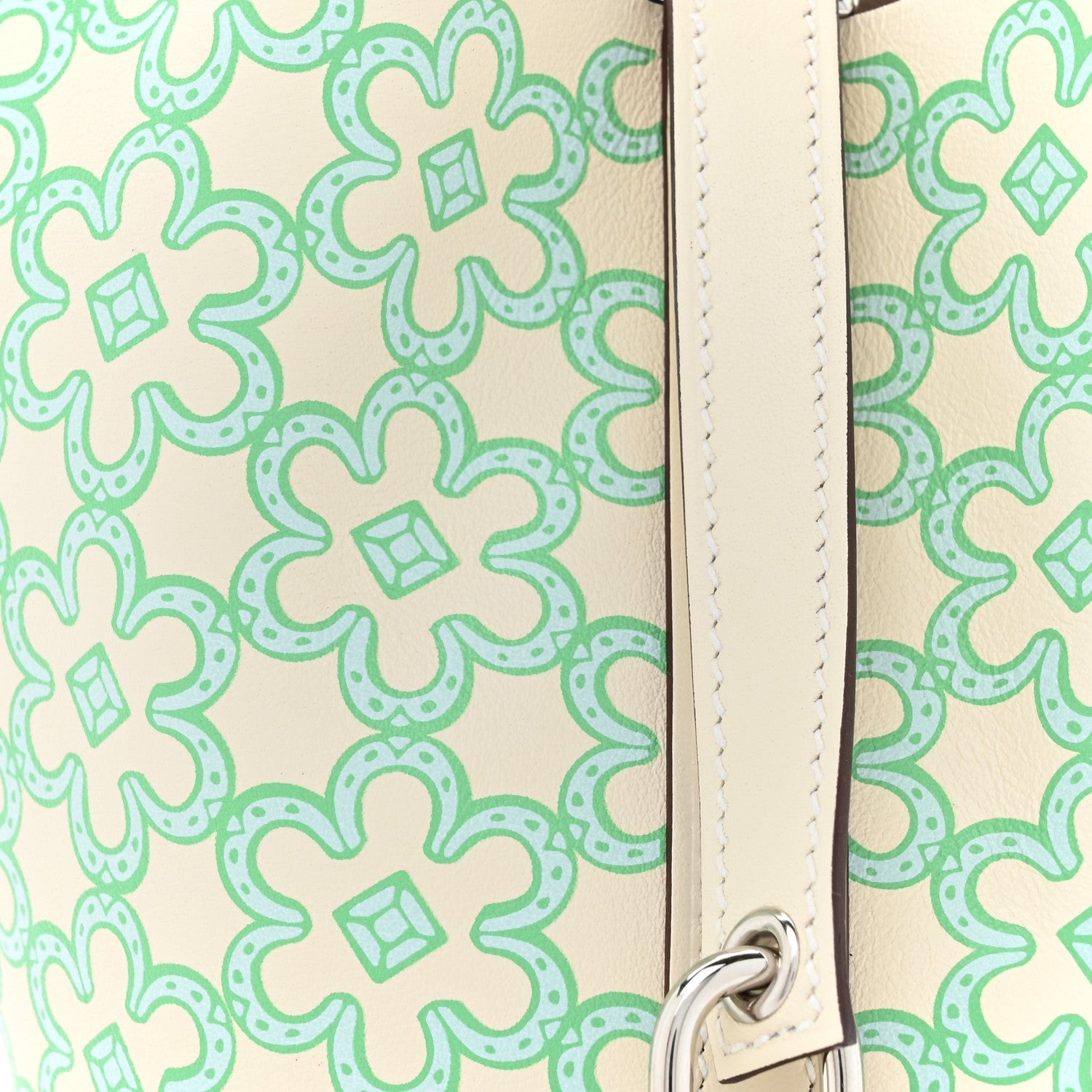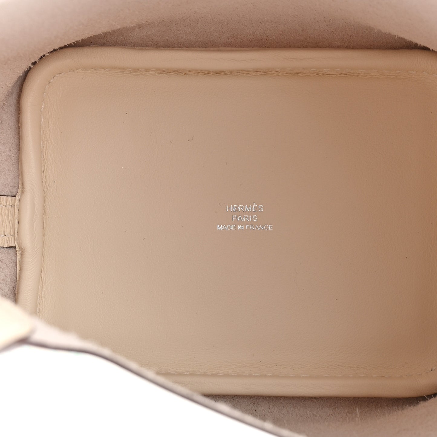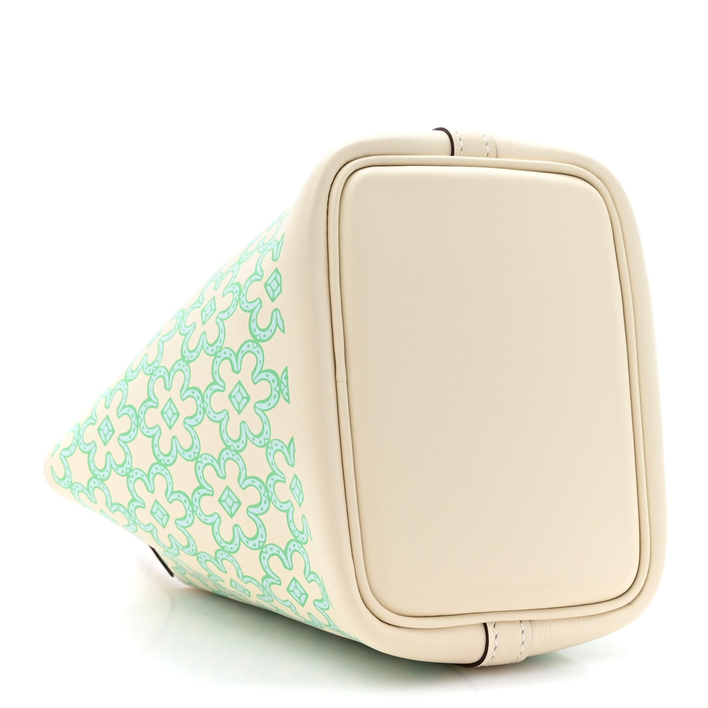 This is an authentic HERMES Swift Micro Lucky Daisy Picotin Lock in Nata and Vert. This chic tote is crafted of swift calfskin leather in beige with silver palladium plated hardware and a green floral print. This one-piece handbag features strap handles that extend from the sides with an extra layer of leather for support. The handbag opens to a spacious suede interior and can be secured with the included padlock.