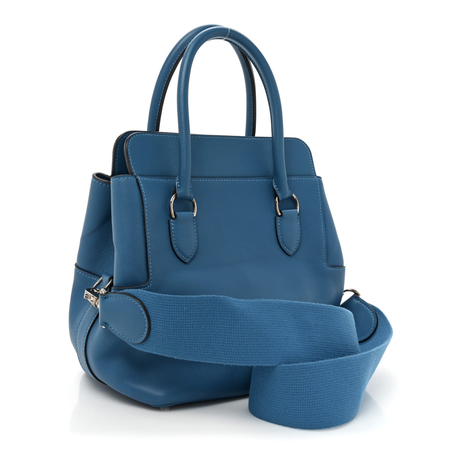 This is an authentic HERMES Swift Toolbox 20 in Mykonos. This stylish tote is crafted of finely grained leather in blue. The bag features rolled leather top handles, an optional shoulder strap, and palladium silver hardware including a frontal turn lock. The top opens to a spacious matching leather interior with patch pockets.Follow this item for alerts. Hermes is a registered trademark of Hermes. FASHIONPHILE is not affiliated with Hermes.