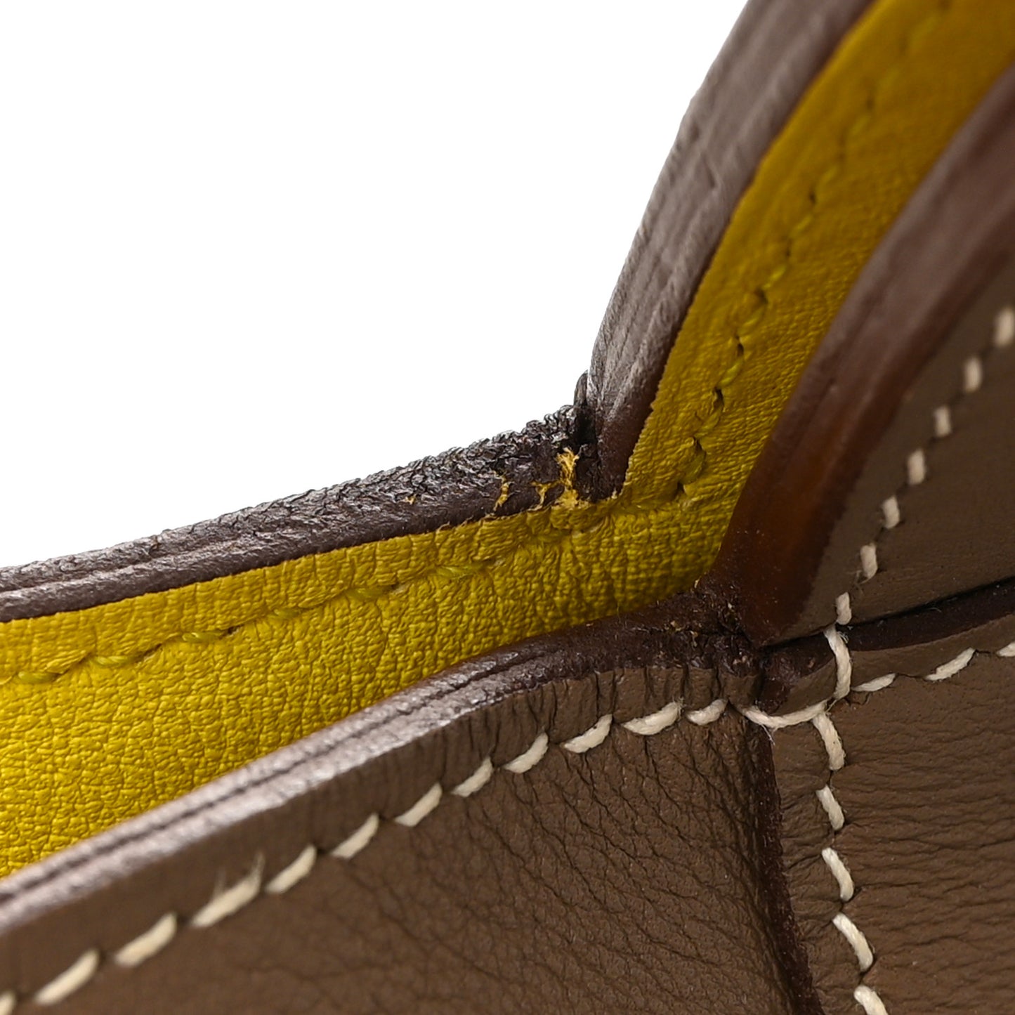 This is an authentic HERMES Swift Verso Toolbox 26 in Etoupe and Lime. This stylish tote is crafted of finely grained swift leather in beige. The bag features rolled leather top handles, an optional shoulder fabric strap, and polished palladium silver hardware including a front turn-lock. This opens to a lime yellow leather interior with patch pockets.Follow this item for alerts. Hermes is a registered trademark of Hermes. FASHIONPHILE is not affiliated with Hermes.