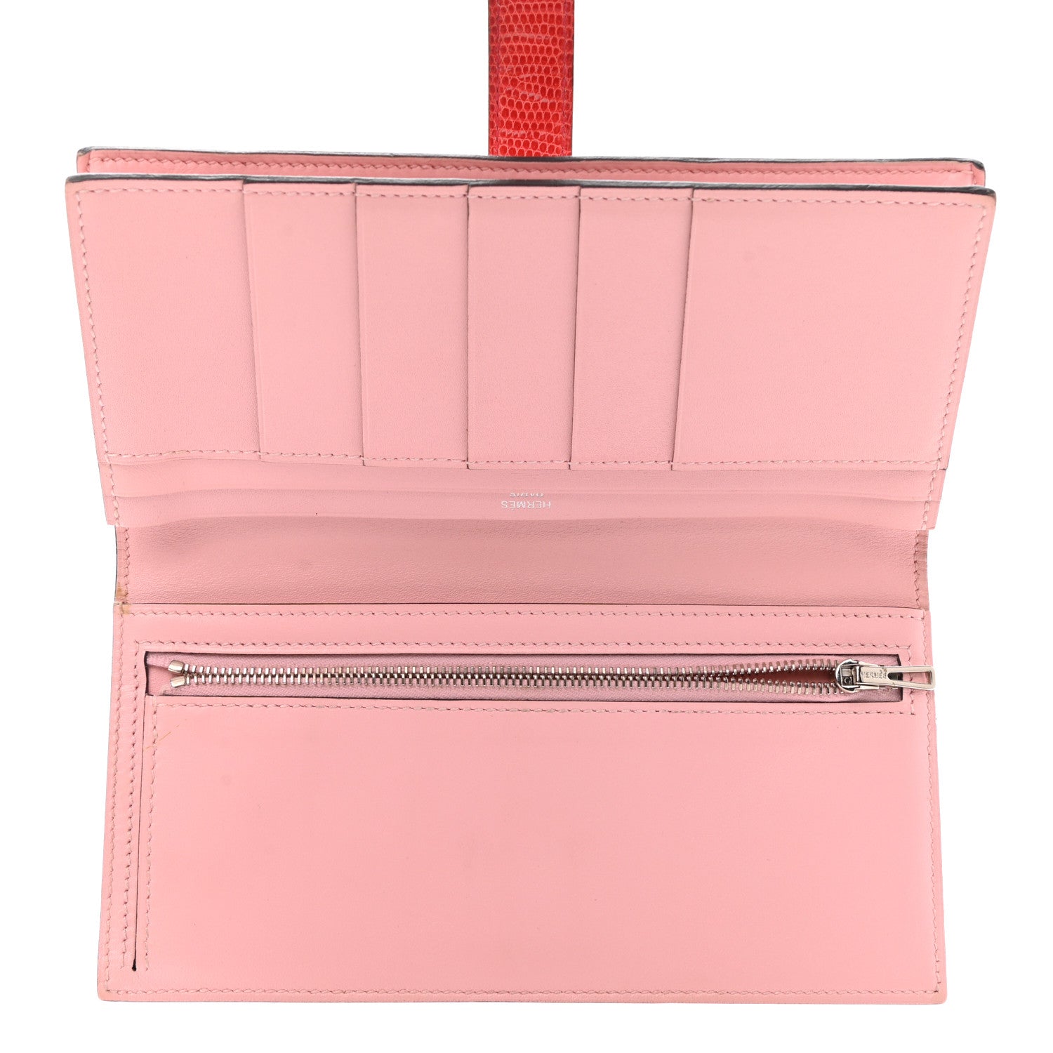Hermes/ Accessories/ Wallets /Hermes Tadelakt Lizard Bearn Gusset Wallet Rose Sakura Bougainvillea