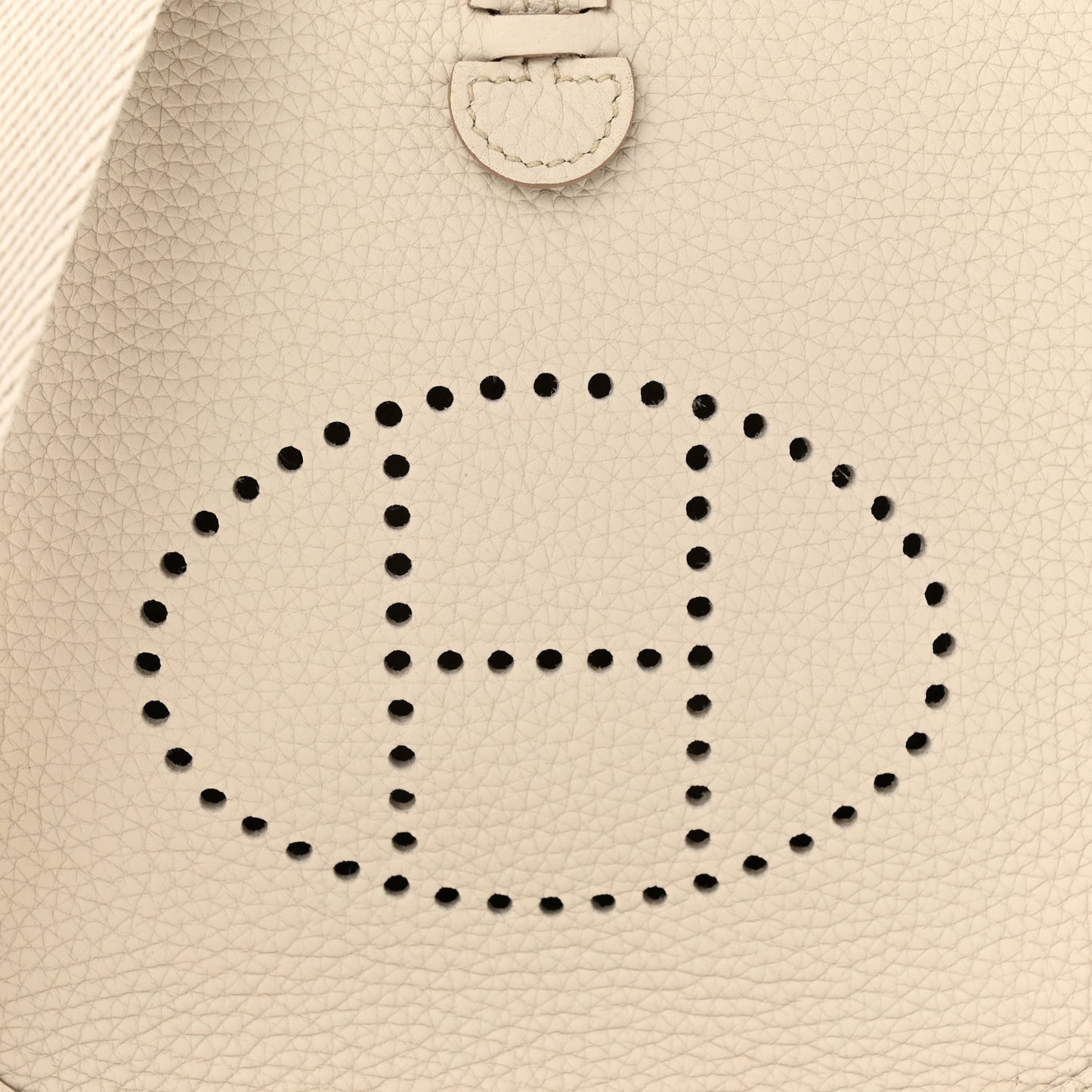 This is an authentic HERMES Taurillon Clemence Amazone Evelyne TPM in Beton. This small messenger bag is crafted of rich taurillon clemence calfskin leather in off white. The bag features an off white canvas body strap, polished silver hardware, and a perforated Hermes H oval logo. The top of the bag opens with a crossover strap to a suede interior.Follow this item for alerts. Hermes is a registered trademark of Hermes. FASHIONPHILE is not affiliated with Hermes.