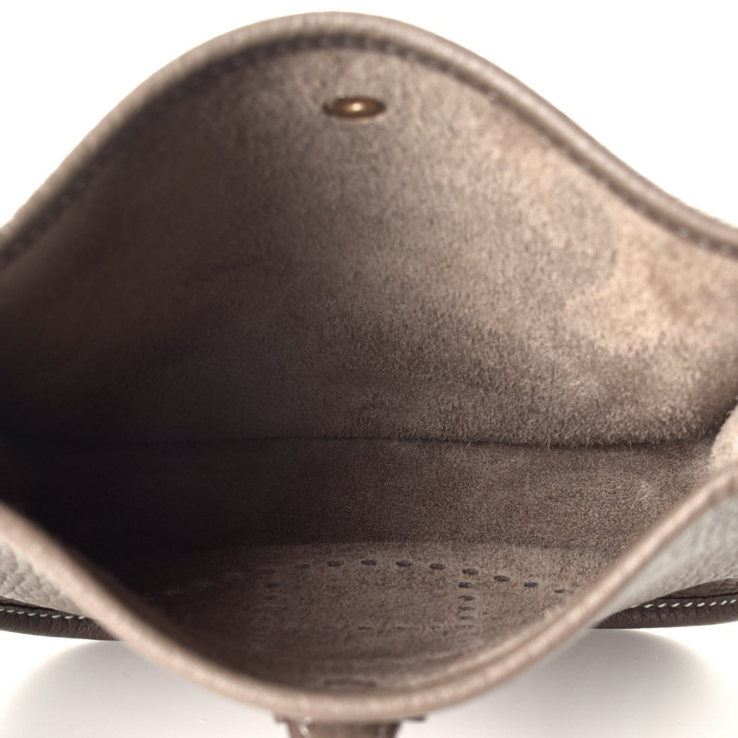 This is an authentic HERMES Taurillon Clemence Amazone Evelyne TPM in Etoupe and Bleu Indigo. This small chic messenger bag is crafted of rich taurillon clemence calfskin leather in brown. The shoulder bag features a dark blue canvas body strap, polished gold hardware, and a perforated Hermes H oval logo. The top of the bag opens with a crossover strap to a matching suede interior.Follow this item for alerts. Hermes is a registered trademark of Hermes. FASHIONPHILE is not affiliated with Hermes.