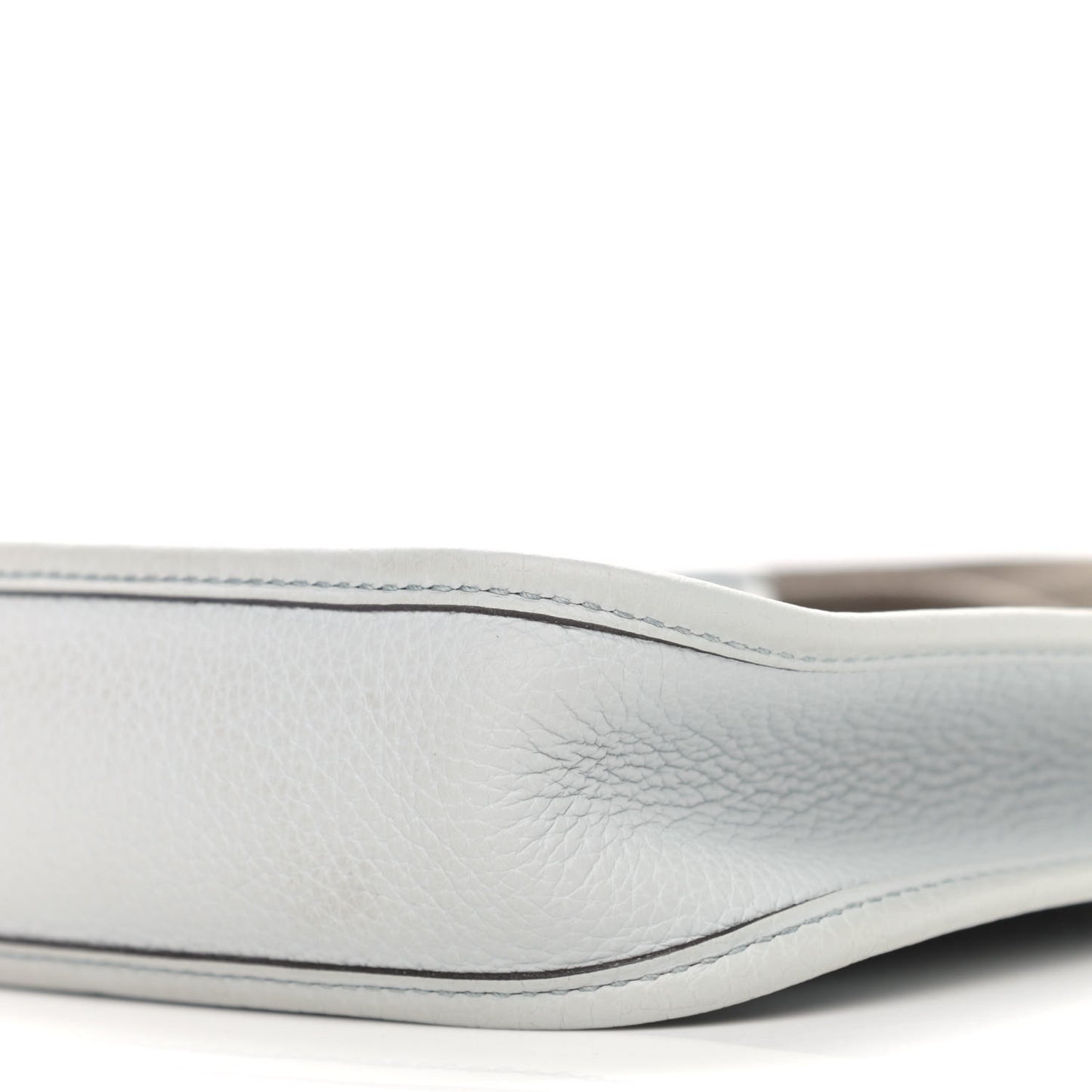 This is an authentic HERMES Taurillon Clemence Amazone Evelyne TPM in Gris Perle and Etain. This messenger bag in the smallest size is crafted of rich taurillon clemence calfskin leather in light grey. The shoulder bag features palladium silver hardware, and a perforated Hermes H oval logo. The top of the bag opens with a crossover strap to a light grey interior.Follow this item for alerts. Hermes is a registered trademark of Hermes. FASHIONPHILE is not affiliated with Hermes.